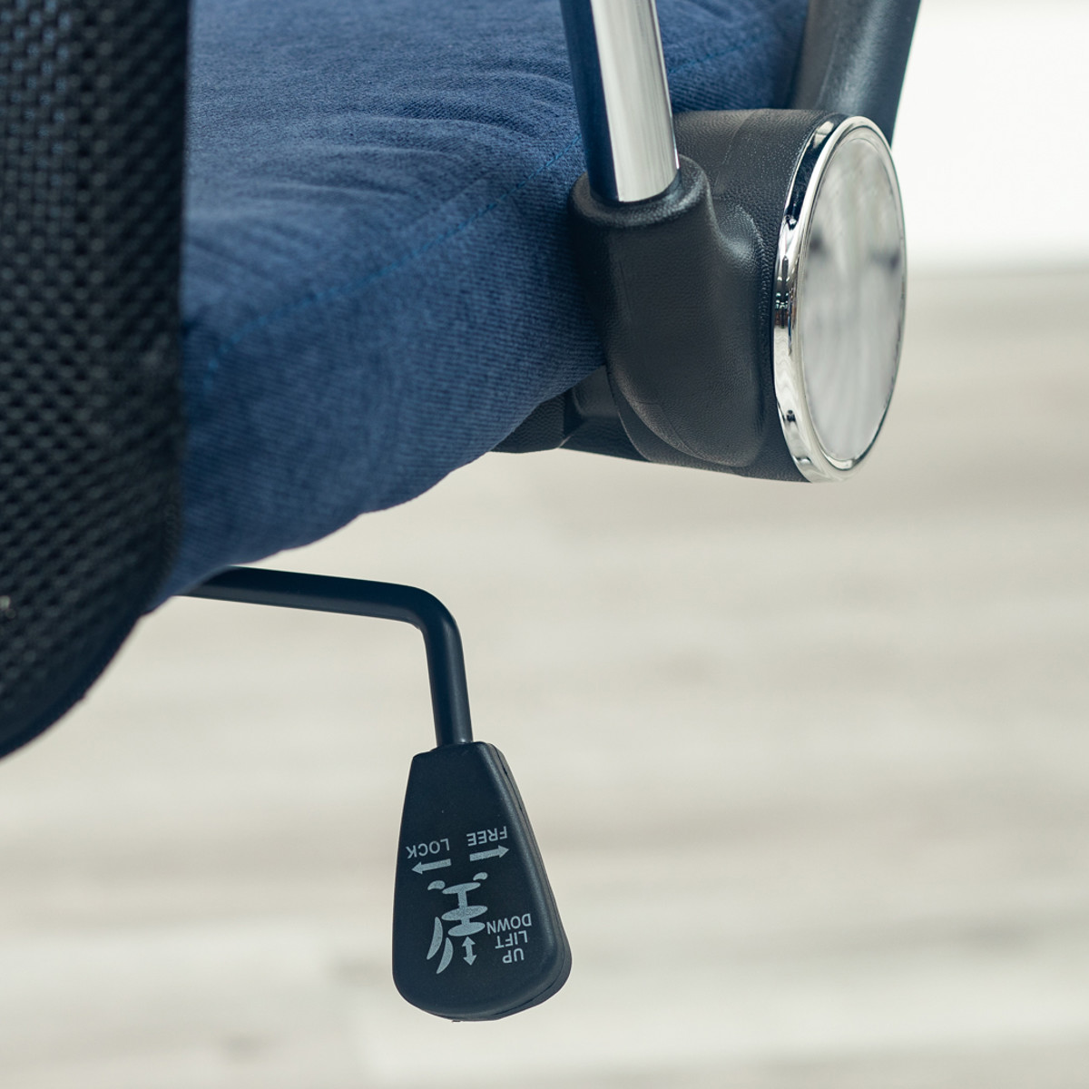 昇降機能はガス圧昇降仕様です。レバーをワンタッチするだけで簡単にできます。体格や机などに合わせて座面高46~55.5cmまで調節可能です。