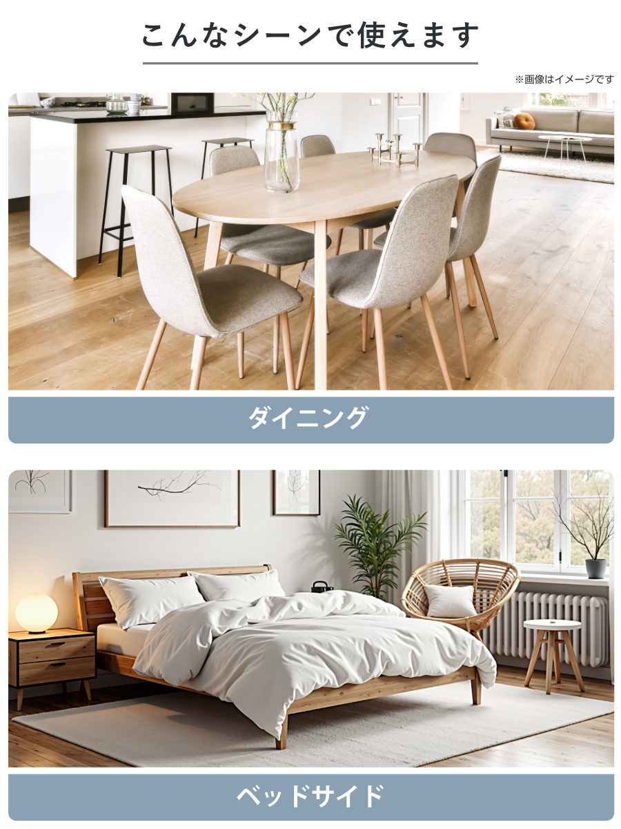 リビングダイニングやベッドサイドなど、様々なシーンでお使いいただけます。