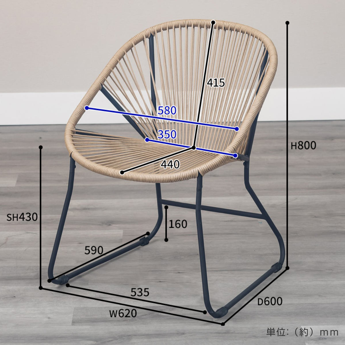 ロープ素材ならではのリラックスできる座り心地です。通気性もあるため、快適にお座りいただけます。