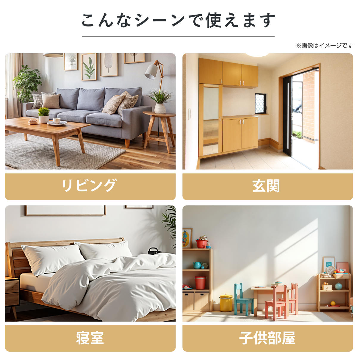 身だしなみチェックにリビングや玄関に置いたり、寝室や子供部屋にも置くことができます。様々なシーンに合わせて活躍してくれます。