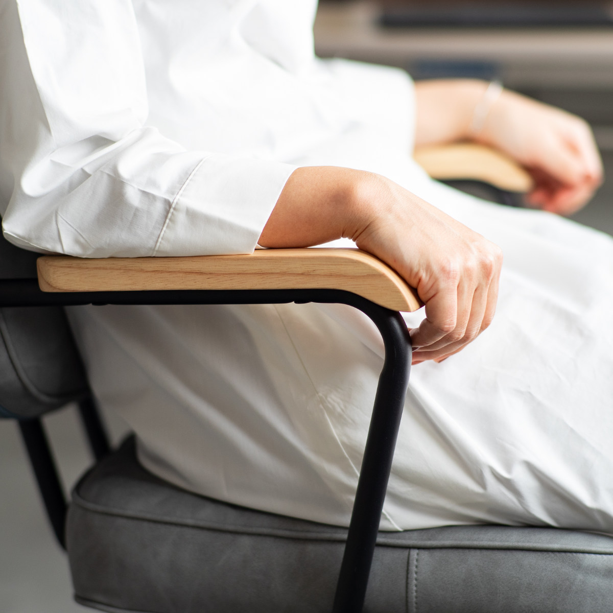 肘掛けがあることで立ち座りがスムーズにできます。休憩中に腕を置いて休めたりすることでリラックスできるため、集中して取り組めます。