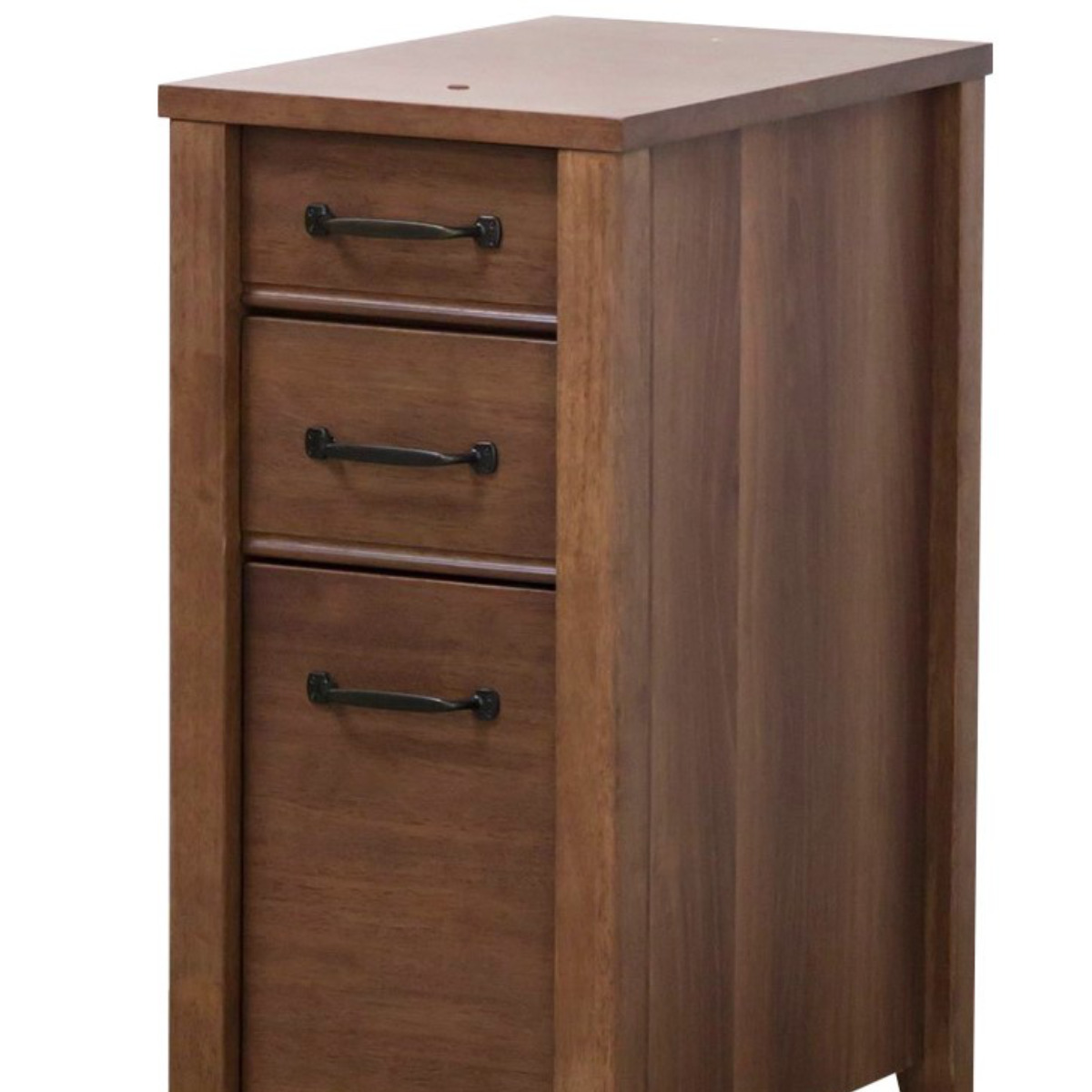 引き出しには金属の取っ手が付いており、重厚感のある落ち着いた雰囲気にしてくれます。