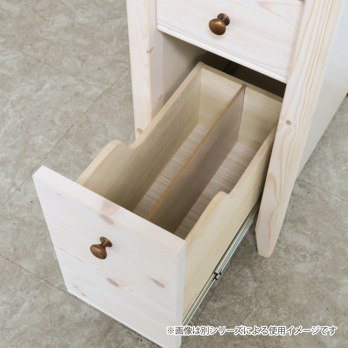 3段目の深型の引き出しはフルオープンレール仕様になっているため、物の出し入れがしやすく奥までたっぷり使えます。仕切り板が1枚入っているので、書類やファイルをサッと取り出せるよう仕分けることができます。