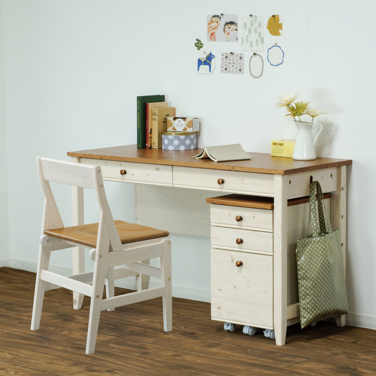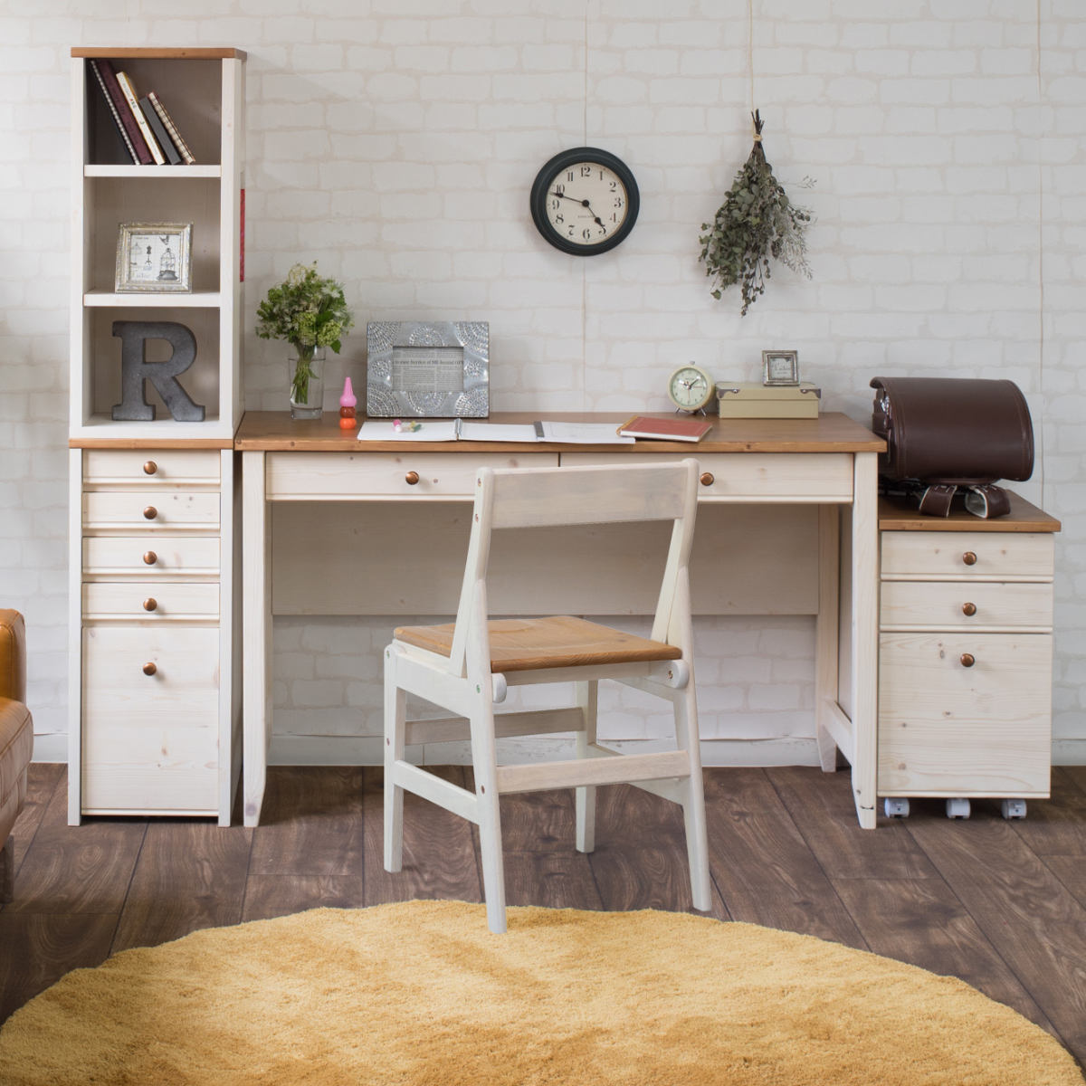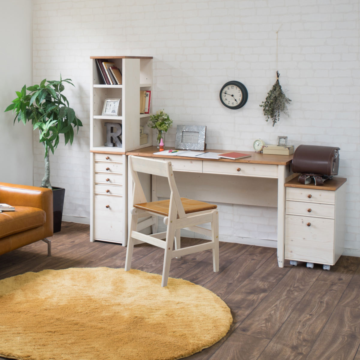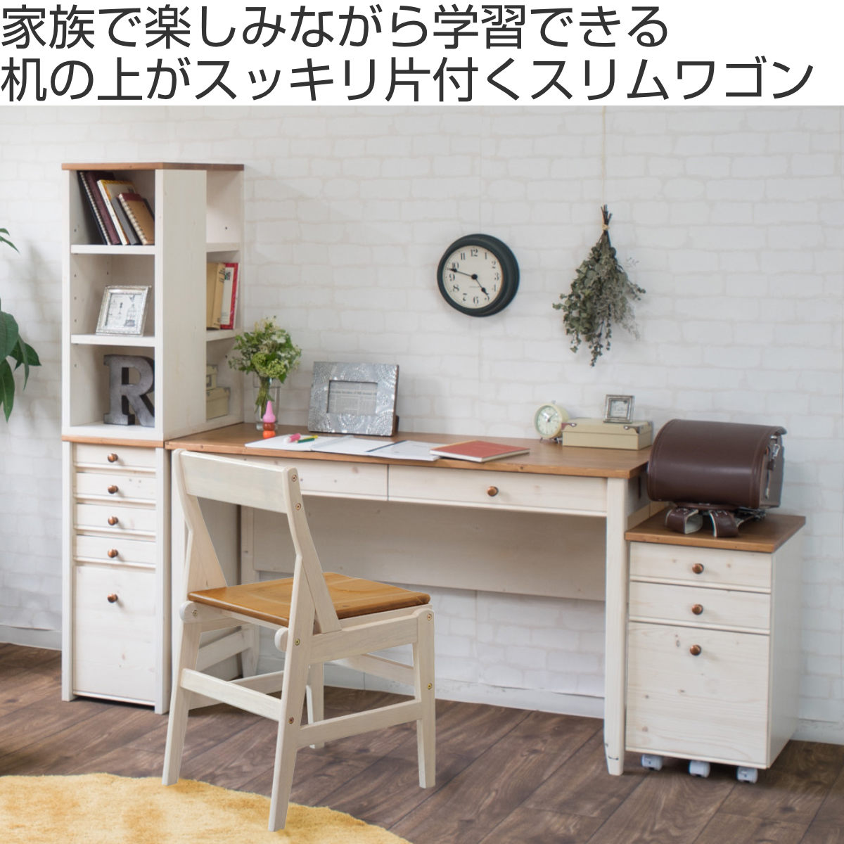 机の上がスッキリと片付けられる、やさしい風合いのカントリー調のスリムワゴンです。奥行きがコンパクトなので、リビングにも置きやすいサイズです。家族で一緒に楽しみながら学習することでやる気がアップします。