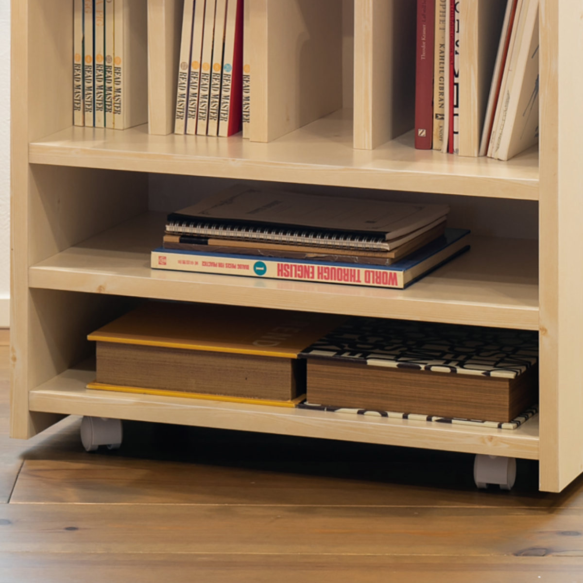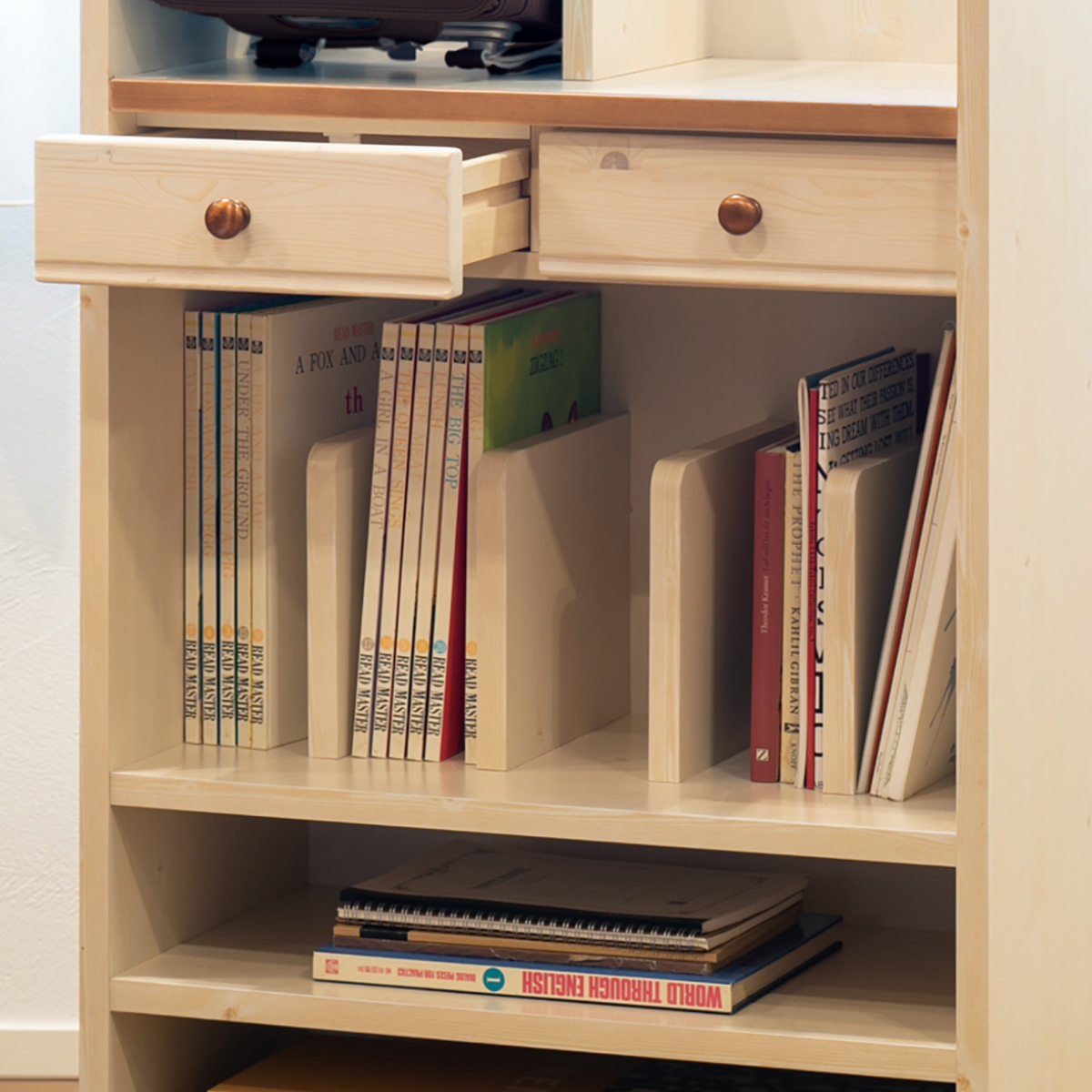 ブックラックには教科書や絵本などを立てて収納できるので、片付けがしやすく探しやすいです。