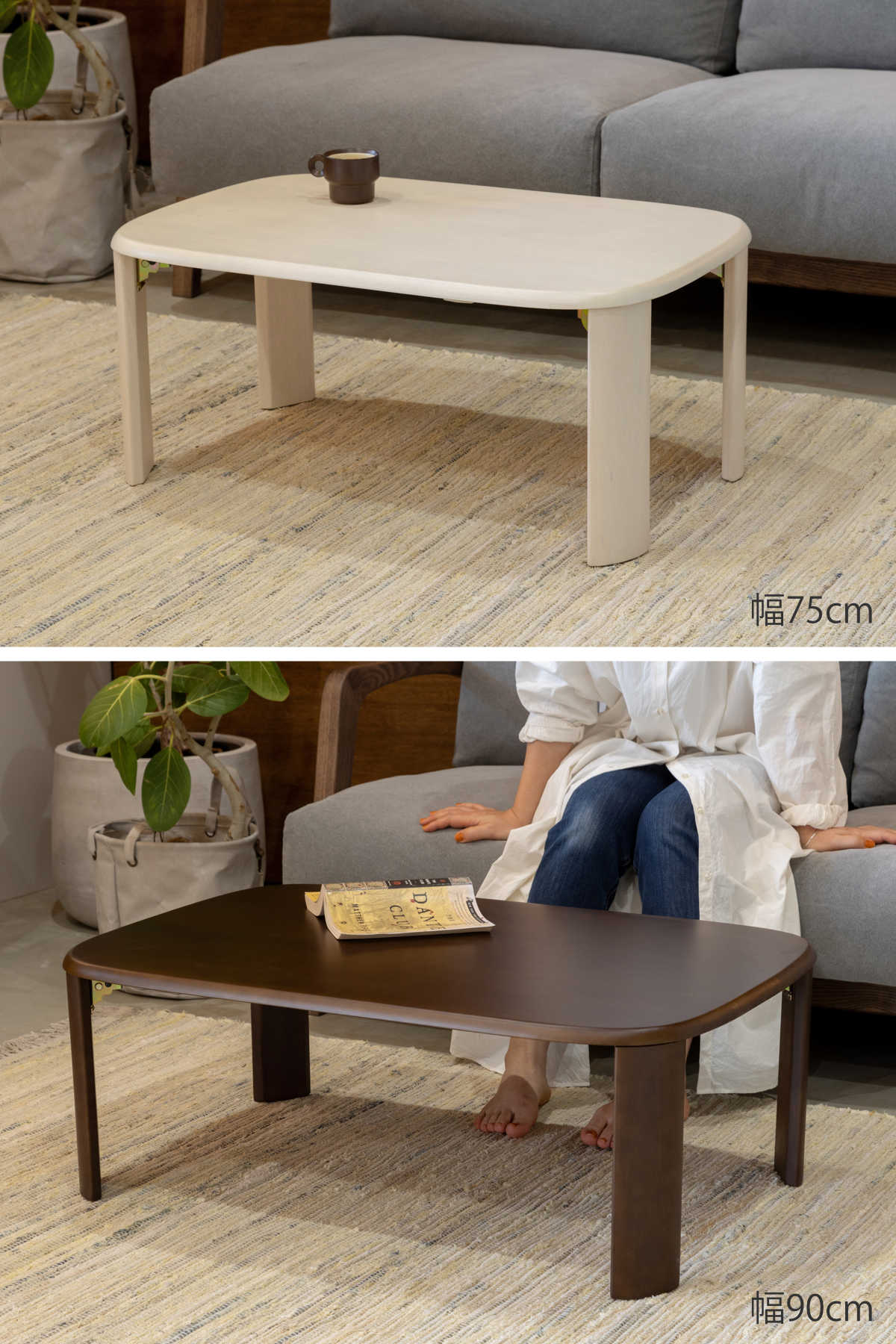 天然木の木目がぬくもりを感じる優しい雰囲気の折りたたみローテーブルです。暮らしにさりげなく馴染むベーシックなデザインに仕上げました。
