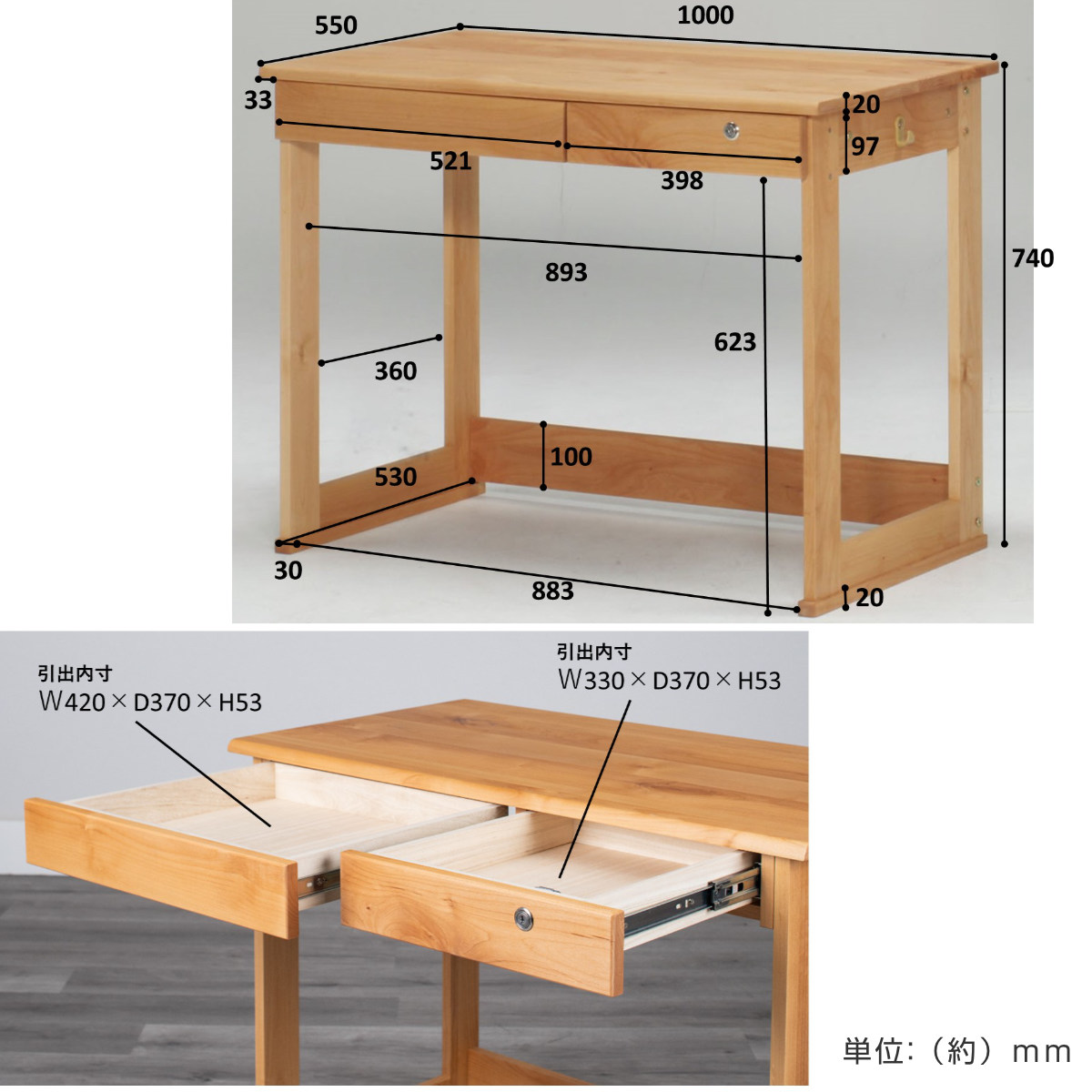 お子様から大人まで幅広く使える天然木を使用した学習机