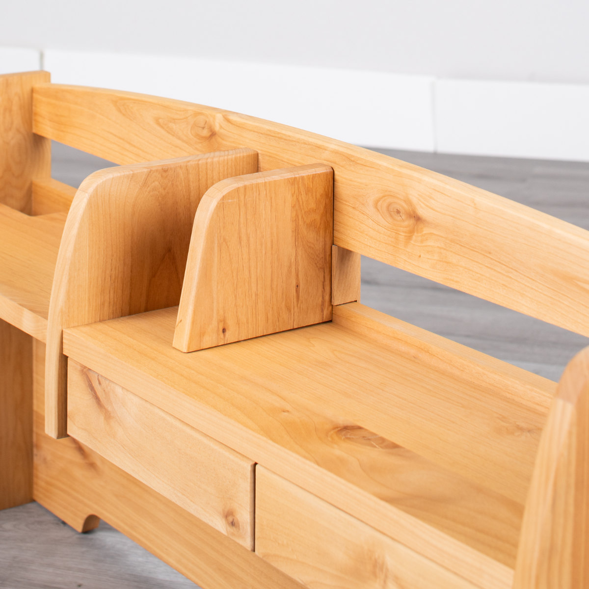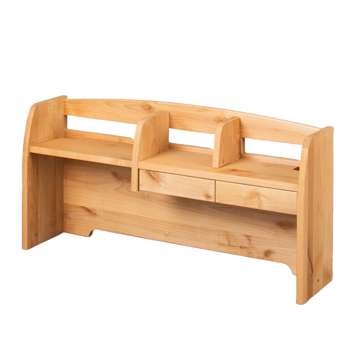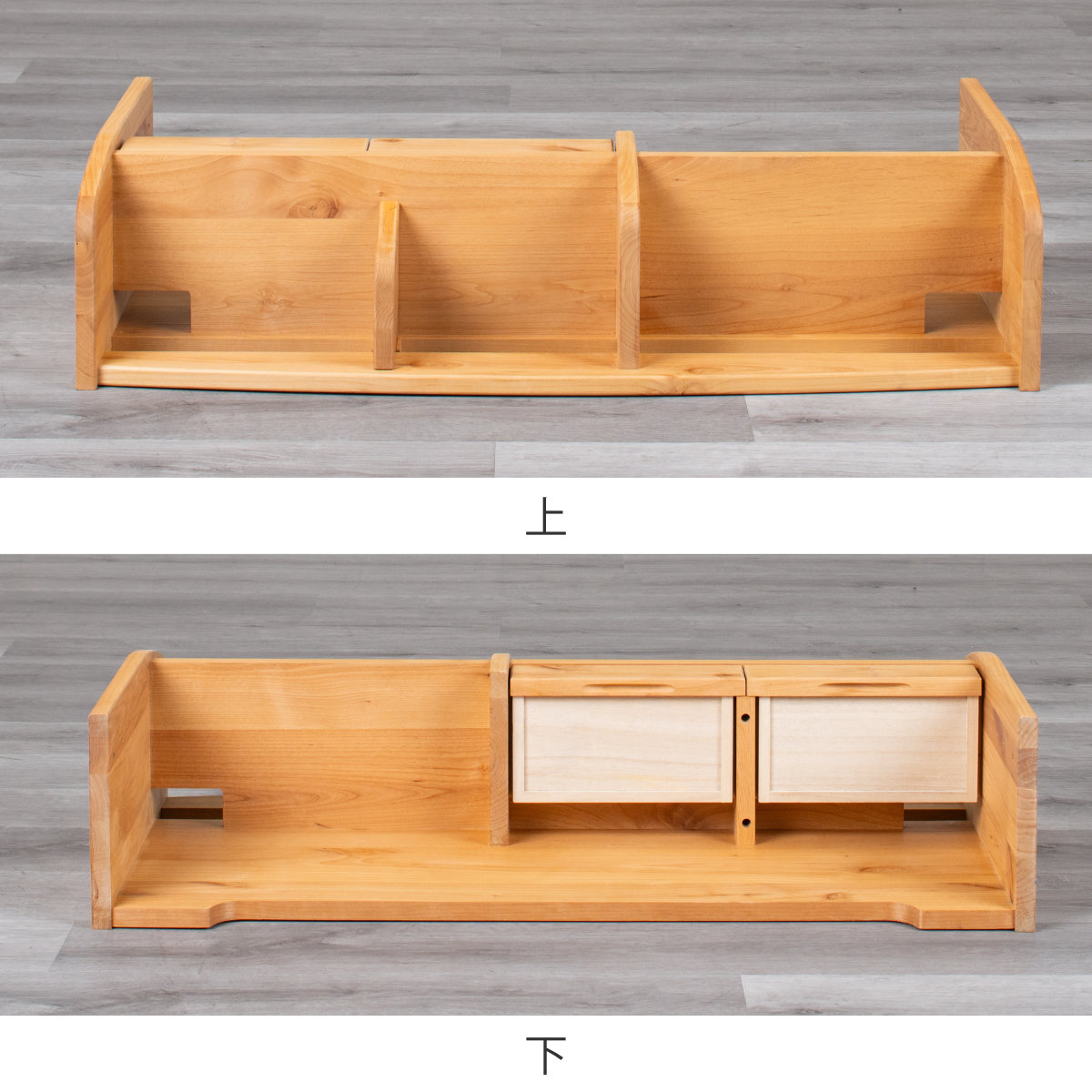 お子様から大人まで幅広く、永くご愛用いただけるアルダー無垢材を使用した、シンプルなデザインのオープンラックです。別売りの学習机の天板、または専用下台に取り付け可能な、2way仕様の拡張収納です。省スペースな中に教科書や本をたっぷり収納できます。