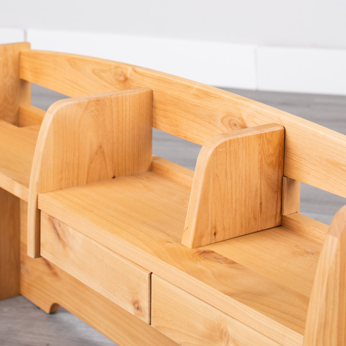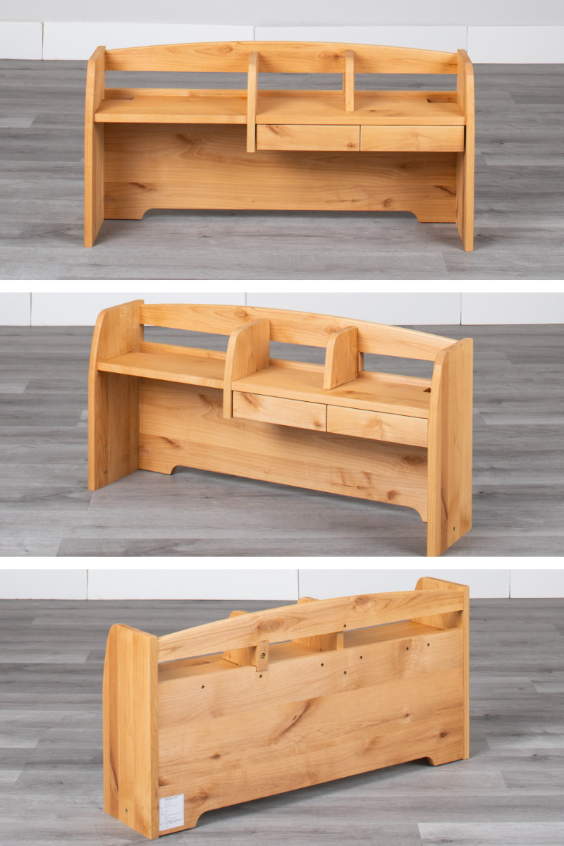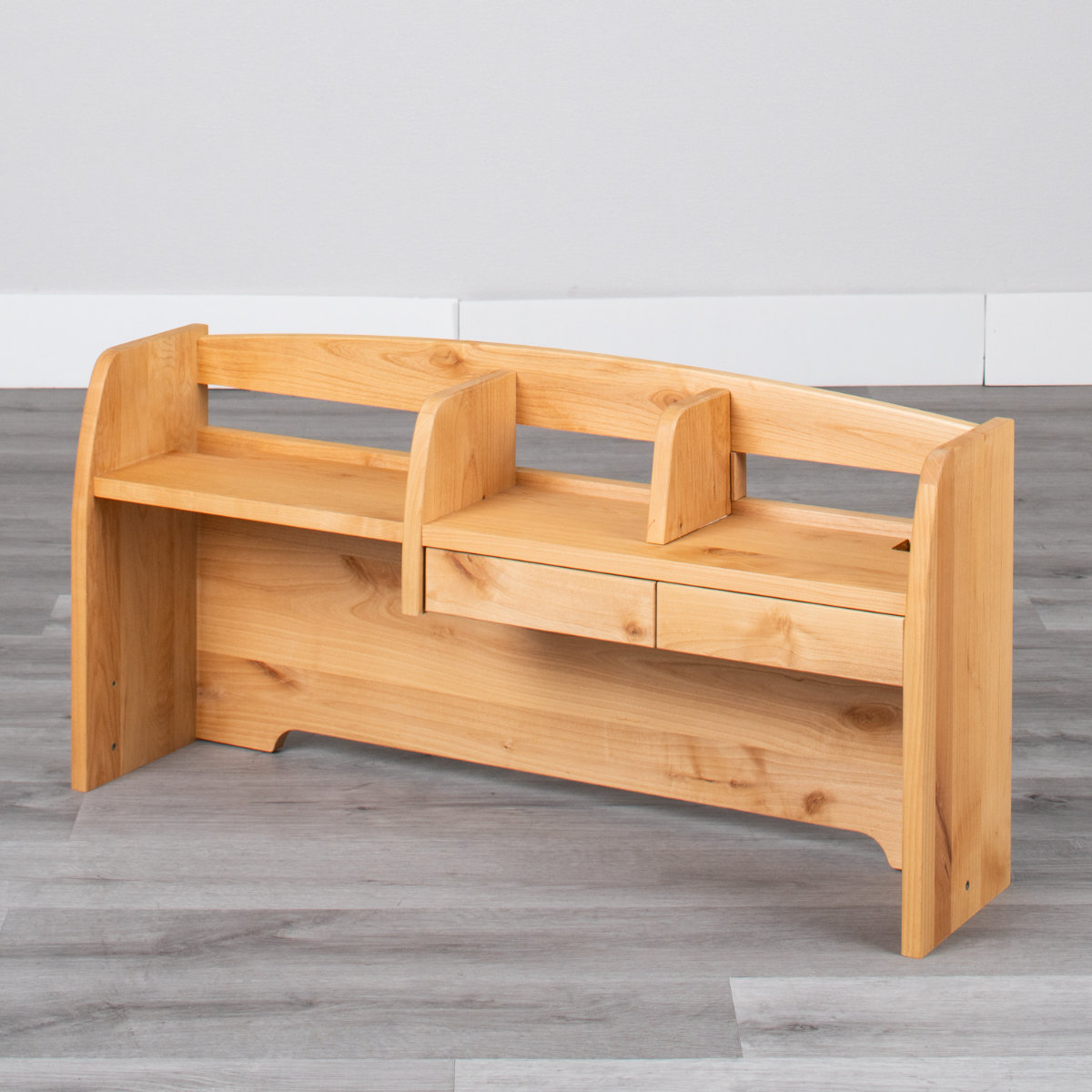 お子様から大人まで幅広く、永くご愛用いただけるアルダー無垢材を使用した、シンプルなデザインのオープンラックです。別売りの学習机の天板、または専用下台に取り付け可能な、2way仕様の拡張収納です。省スペースな中に教科書や本をたっぷり収納できます。