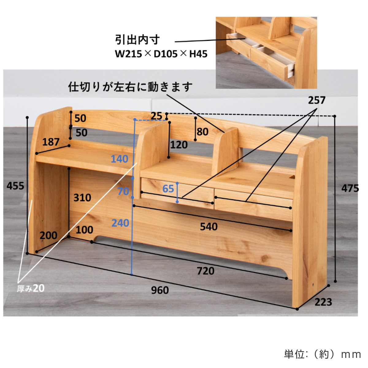 | サイズ | 約 幅96×奥行22.3×高さ47.5(cm) |