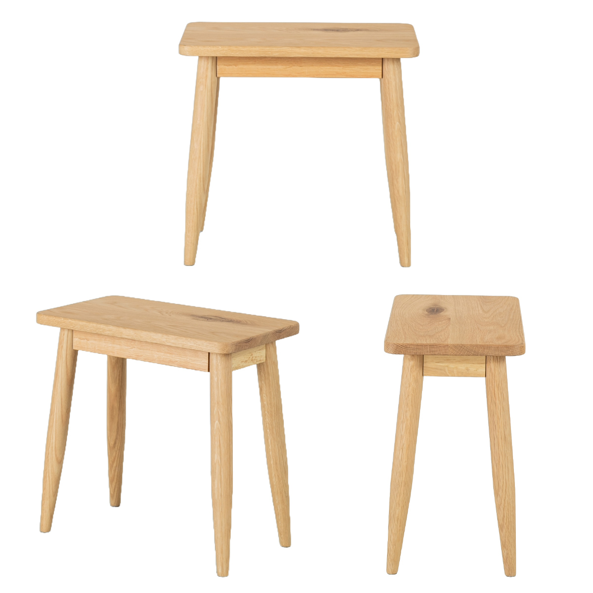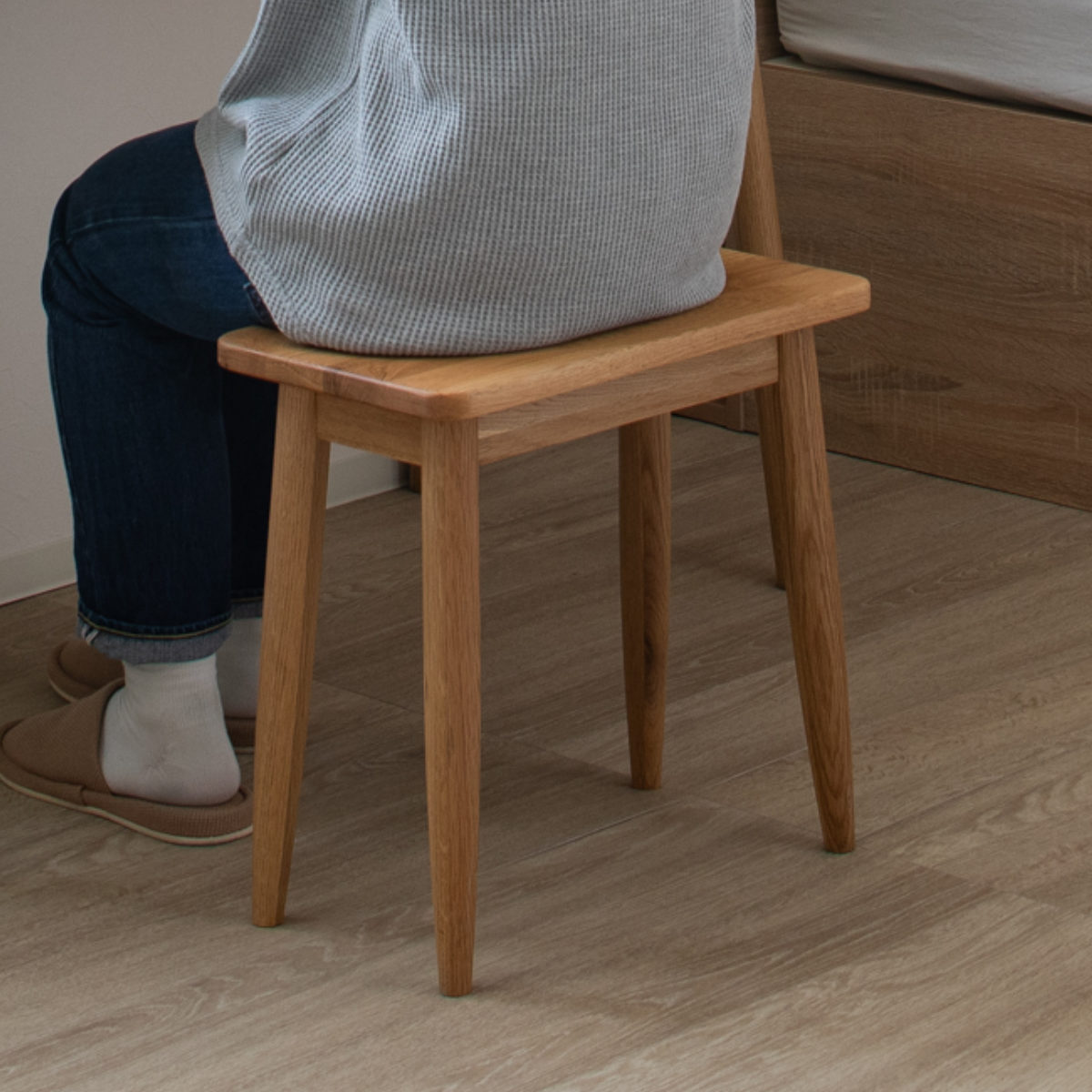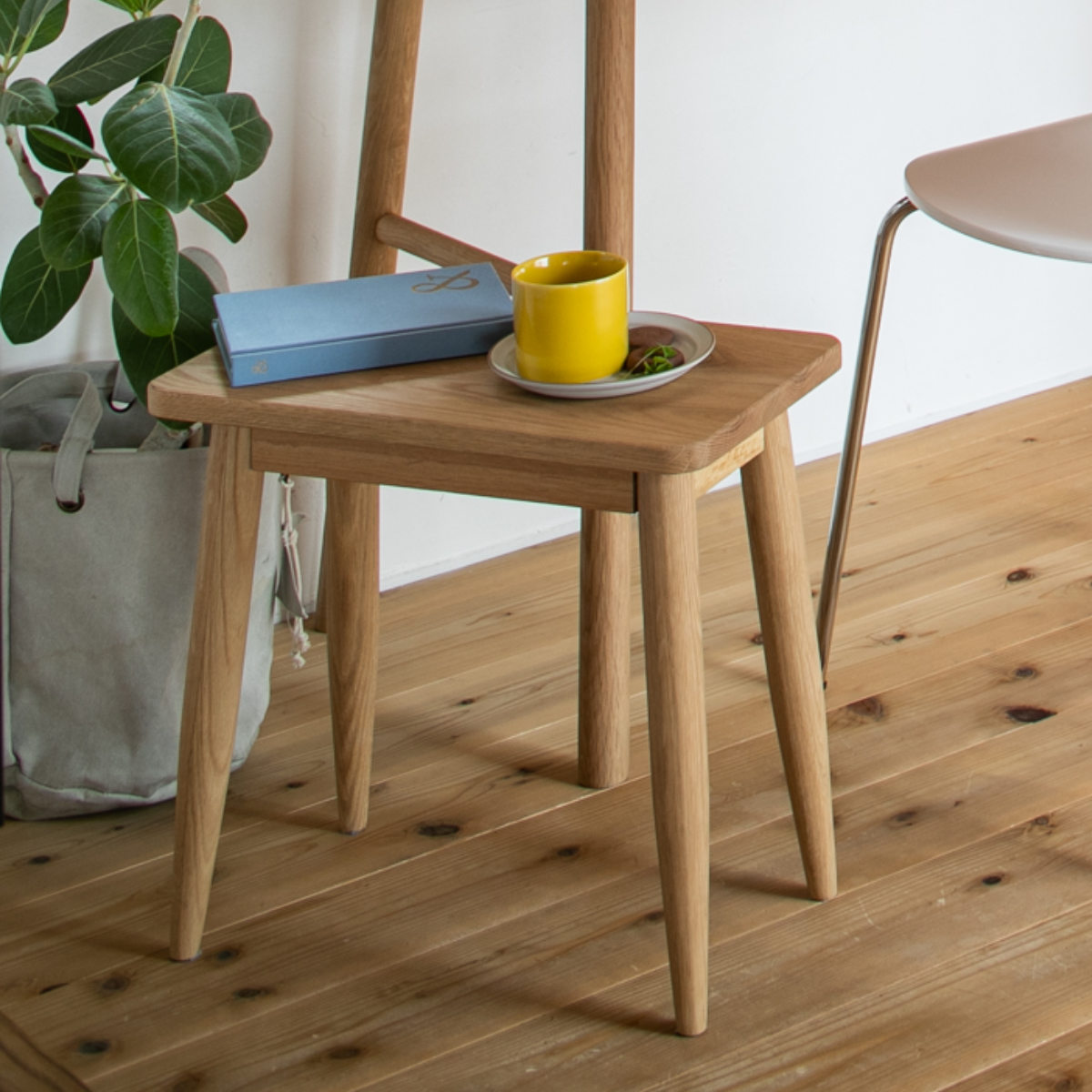 温かみのあるオーク無垢材を贅沢に使用したスツールです。急な来客時にサッと取り出せる使いやすいサイズ感です。シンプルなデザインのため、年齢や性別を問わずお使いいただけます。