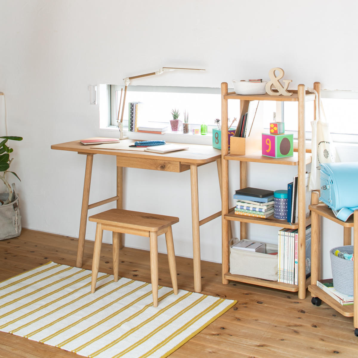同じシリーズには、デスク90cm・デスク110cm・オープンラック・シェルフワゴン・スツールがあります。シリーズで揃えれば、お部屋に統一感が生まれワンランク上の空間を演出できます。