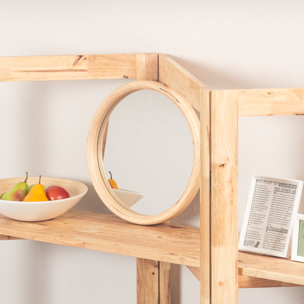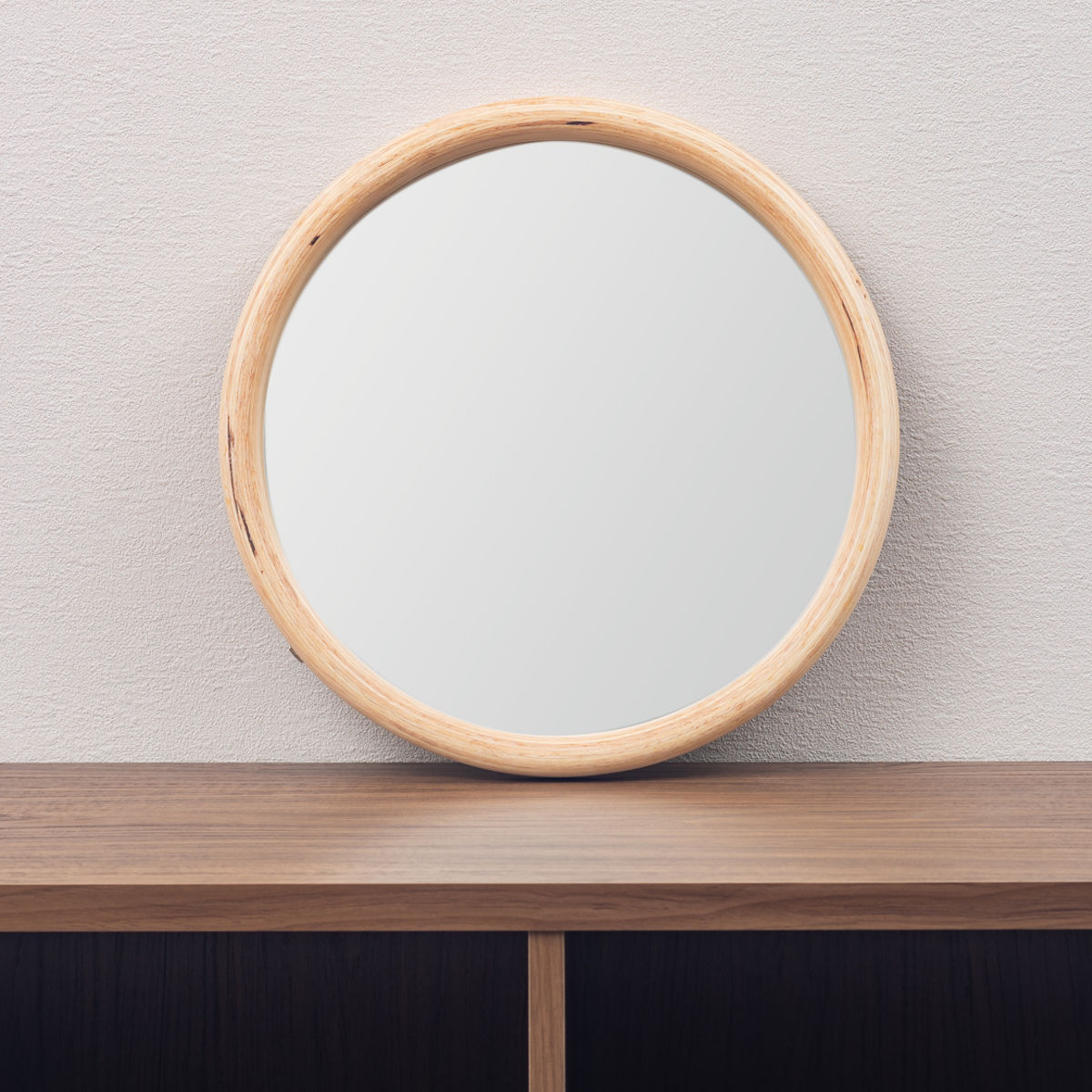 ラバーウッド無垢材の素材感を活かしたウォールミラー