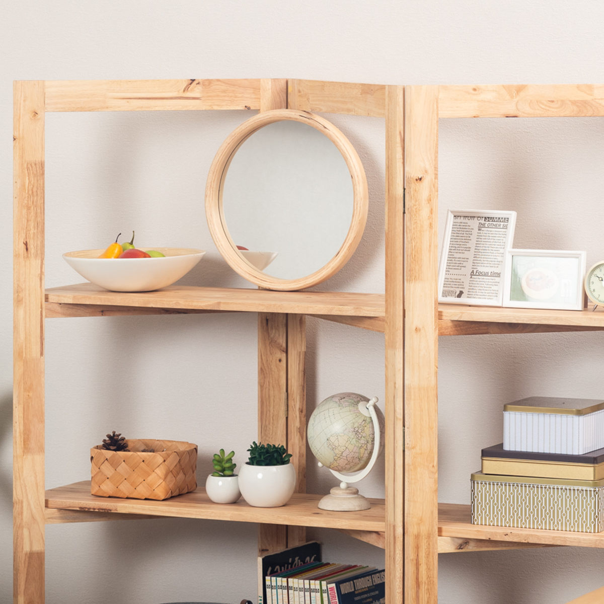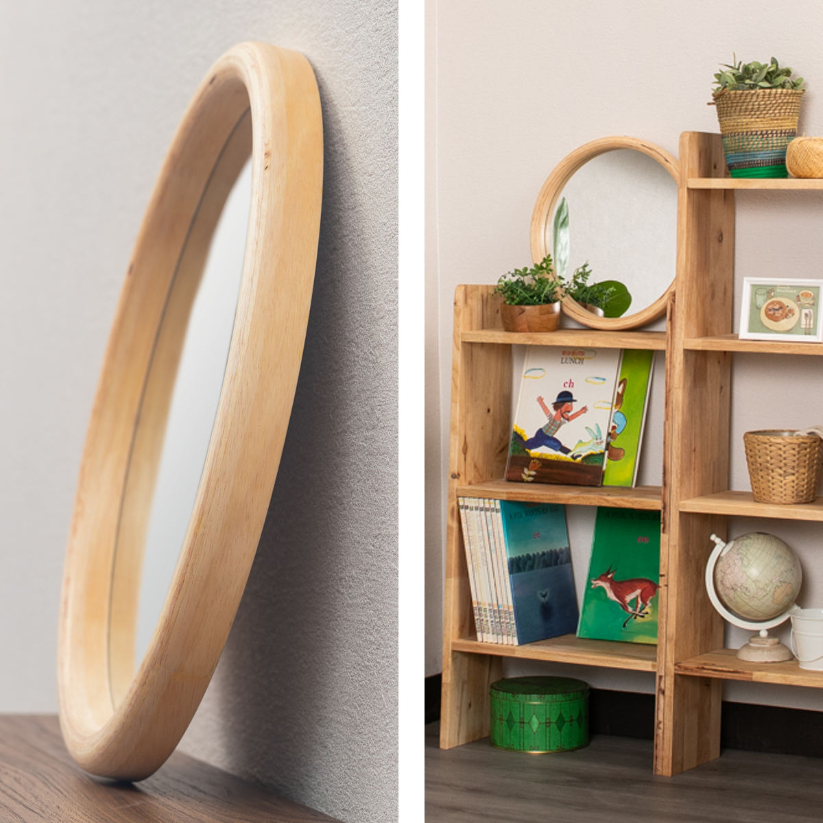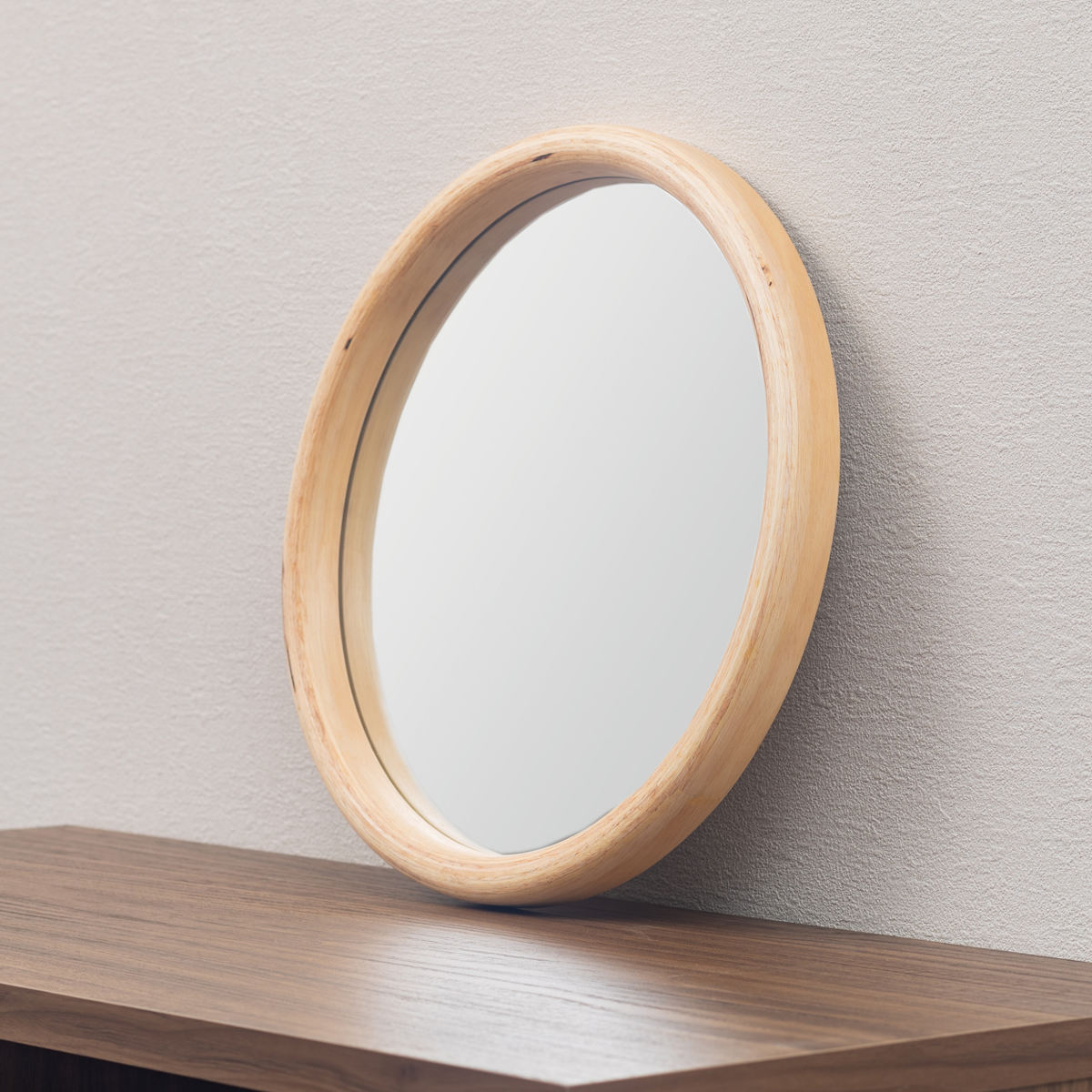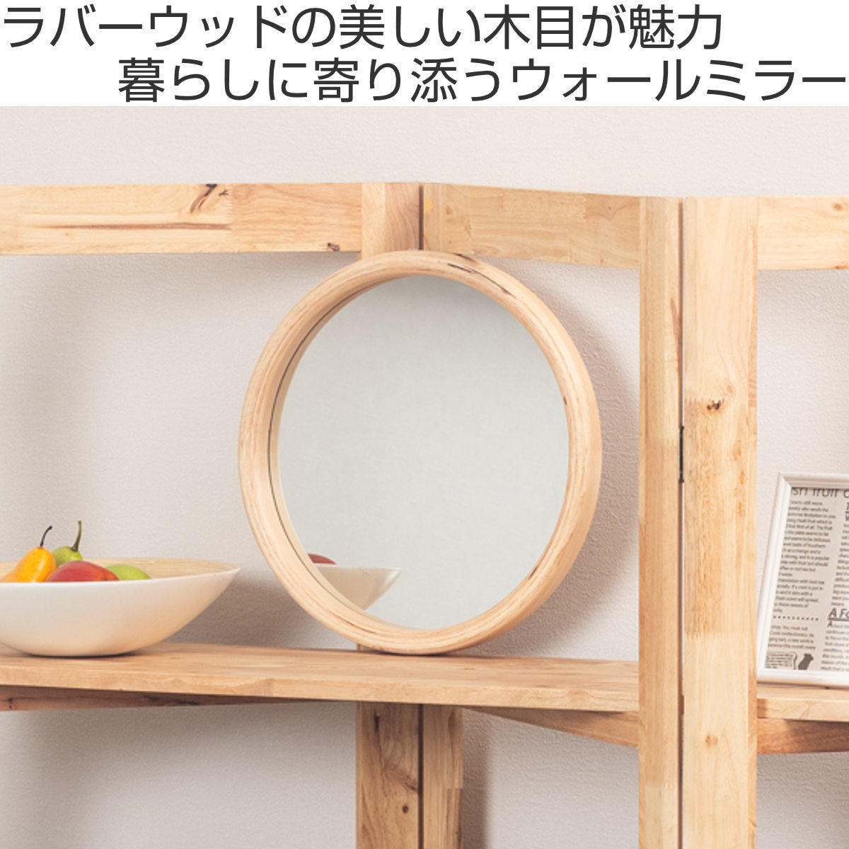 ラバーウッド無垢材の素材感を活かした木枠が魅力のウォールミラーです。穏やかな木目を活かしたデザインがお部屋の雰囲気を和ませます。