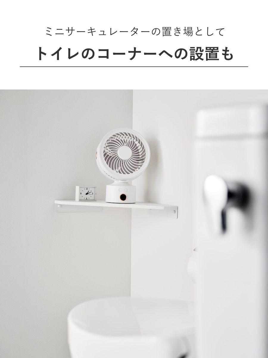 夏場に欲しくなるミニサーキュレーターやハンディーファンの置き場としてトイレのコーナーへの設置もおすすめです。コンパクトなサイズ感で、空間を圧迫しません。