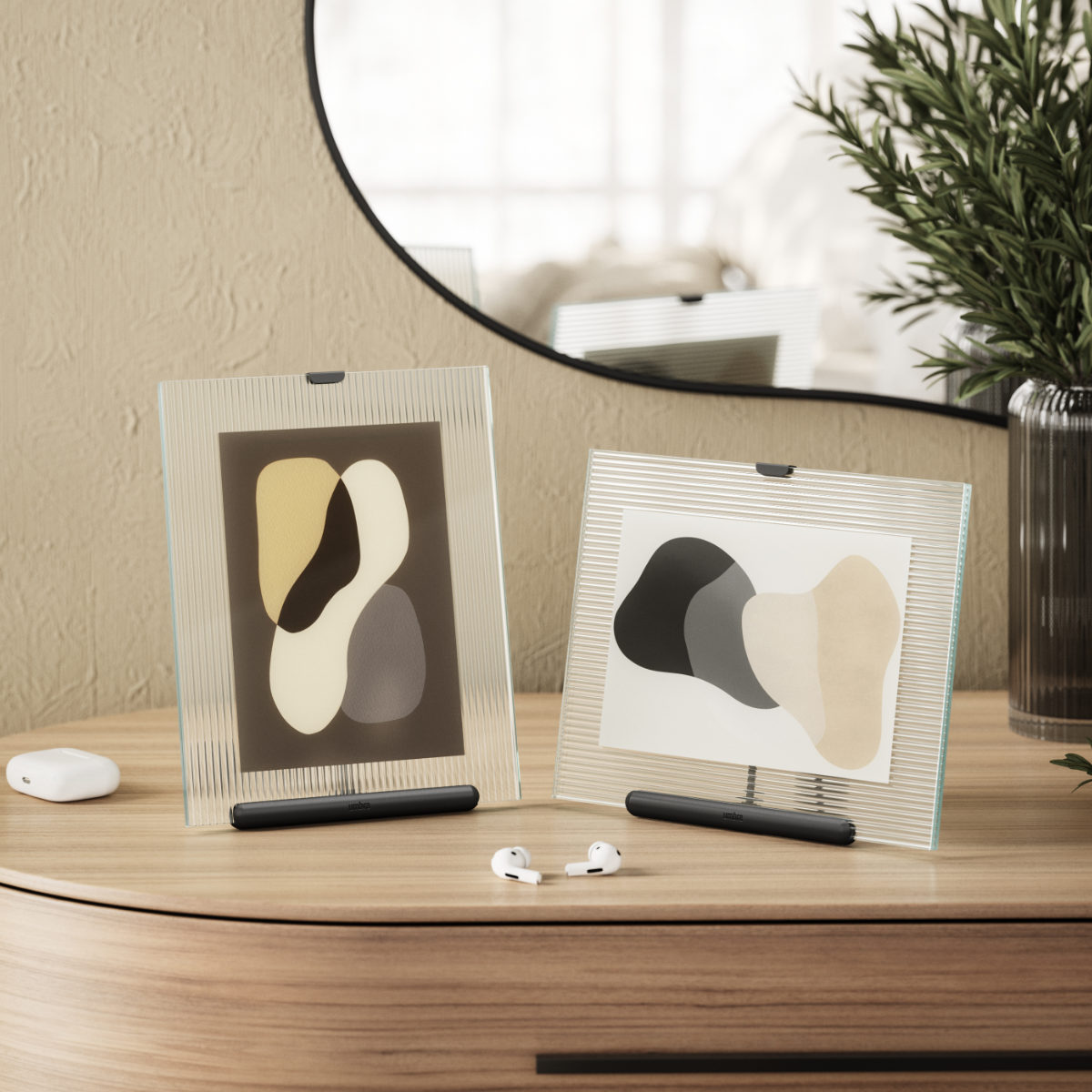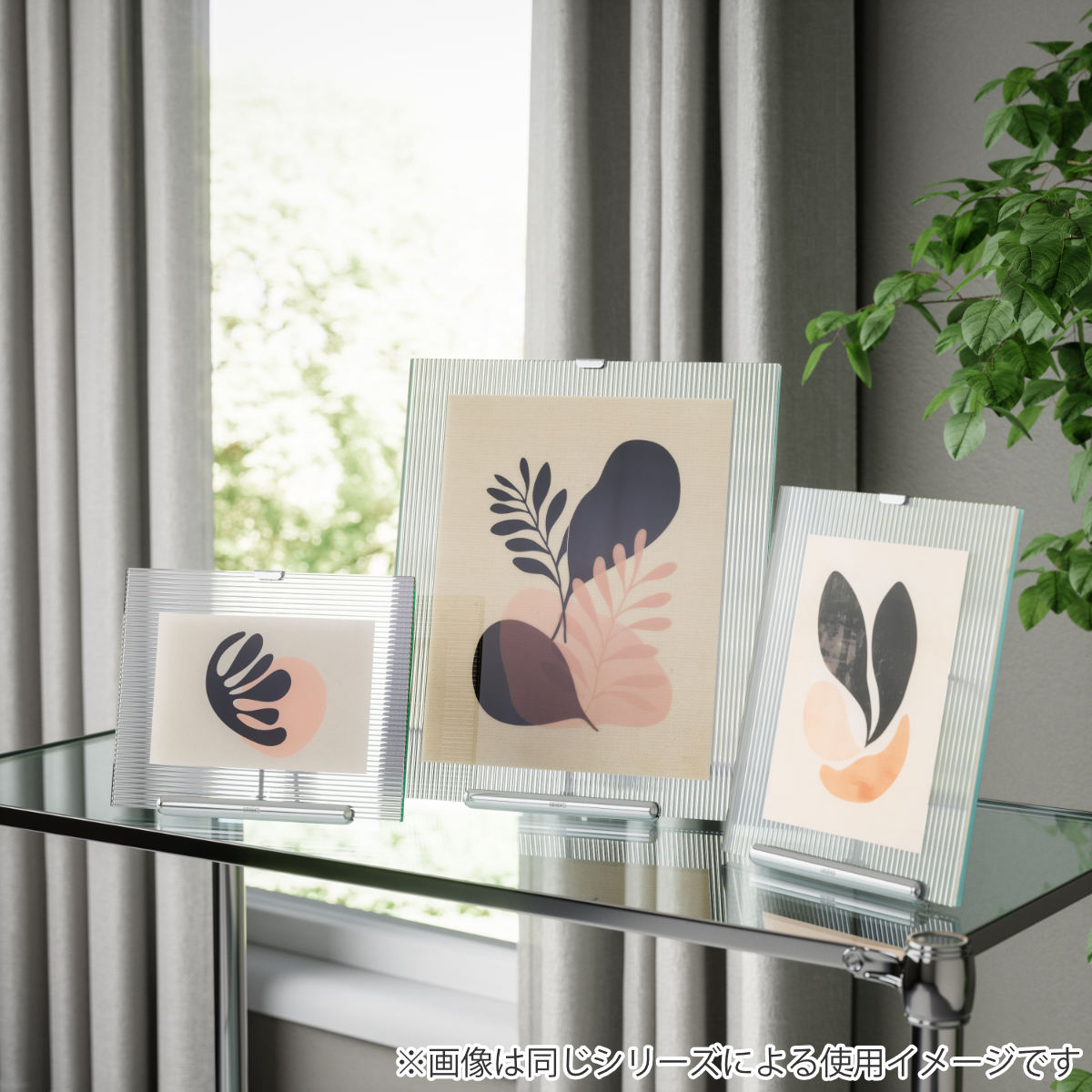 大切な写真を美しく引き立てる、装飾的なイーゼルスタイルのフォトフレームです。縦に施された繊細な溝模様が光をやわらかく拡散し、空間に上品なテクスチャーと奥行きをもたらします。シンプルながらも印象的なデザインで、リビングや寝室、玄関など、さまざまな空間に自然と調和します。