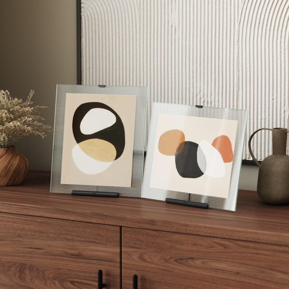 大切な写真を美しく引き立てる、装飾的なイーゼルスタイルのフォトフレームです。縦に施された繊細な溝模様が光をやわらかく拡散し、空間に上品なテクスチャーと奥行きをもたらします。シンプルながらも印象的なデザインで、リビングや寝室、玄関など、さまざまな空間に自然と調和します。