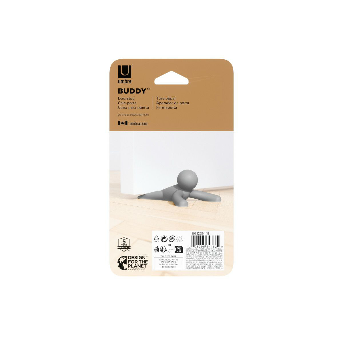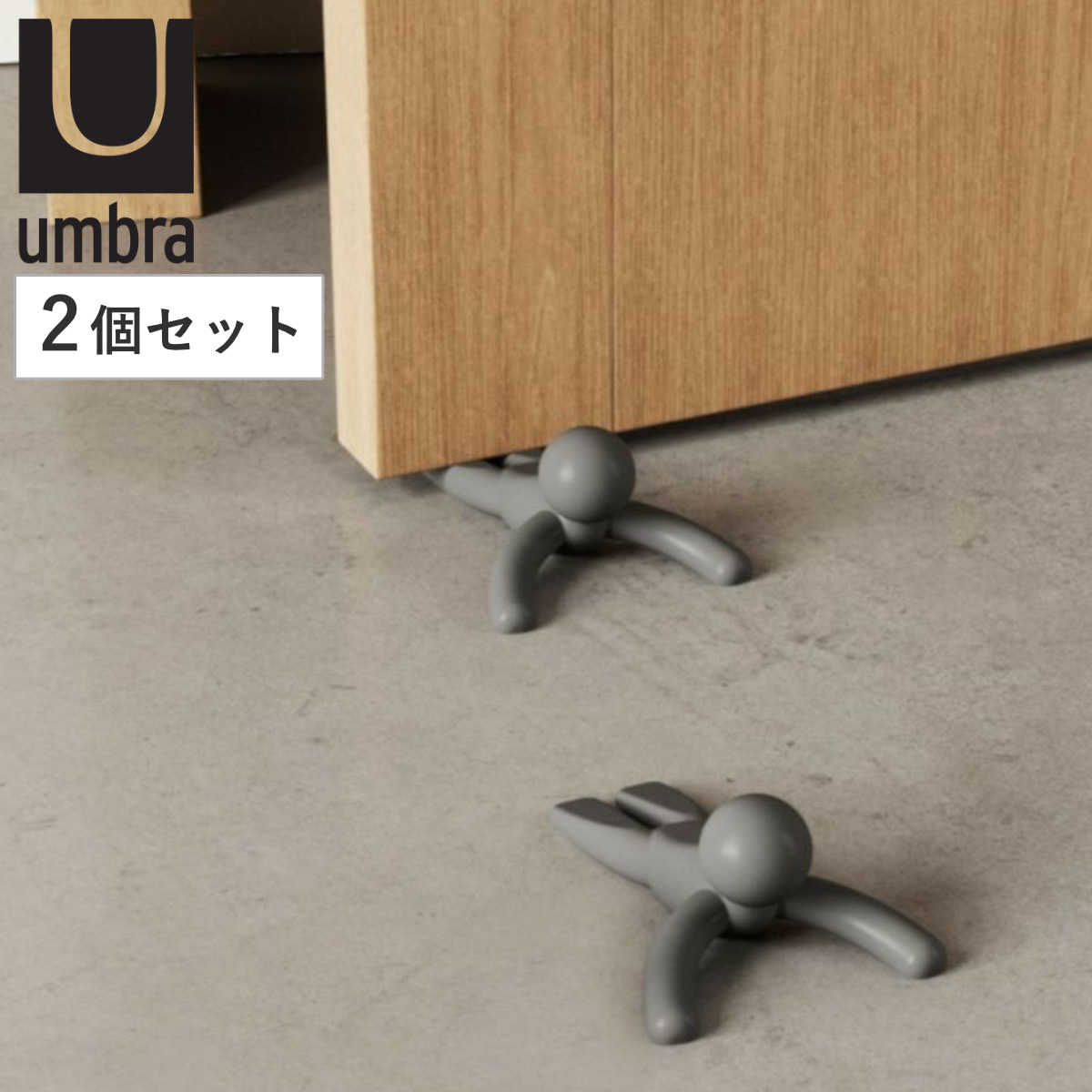 Umbraのオリジナルキャラクター、バディーのかわいいドアストッパーです。手触りが柔らかなラバー製で、どんな床面に置いても滑らずにドアをしっかり固定します。