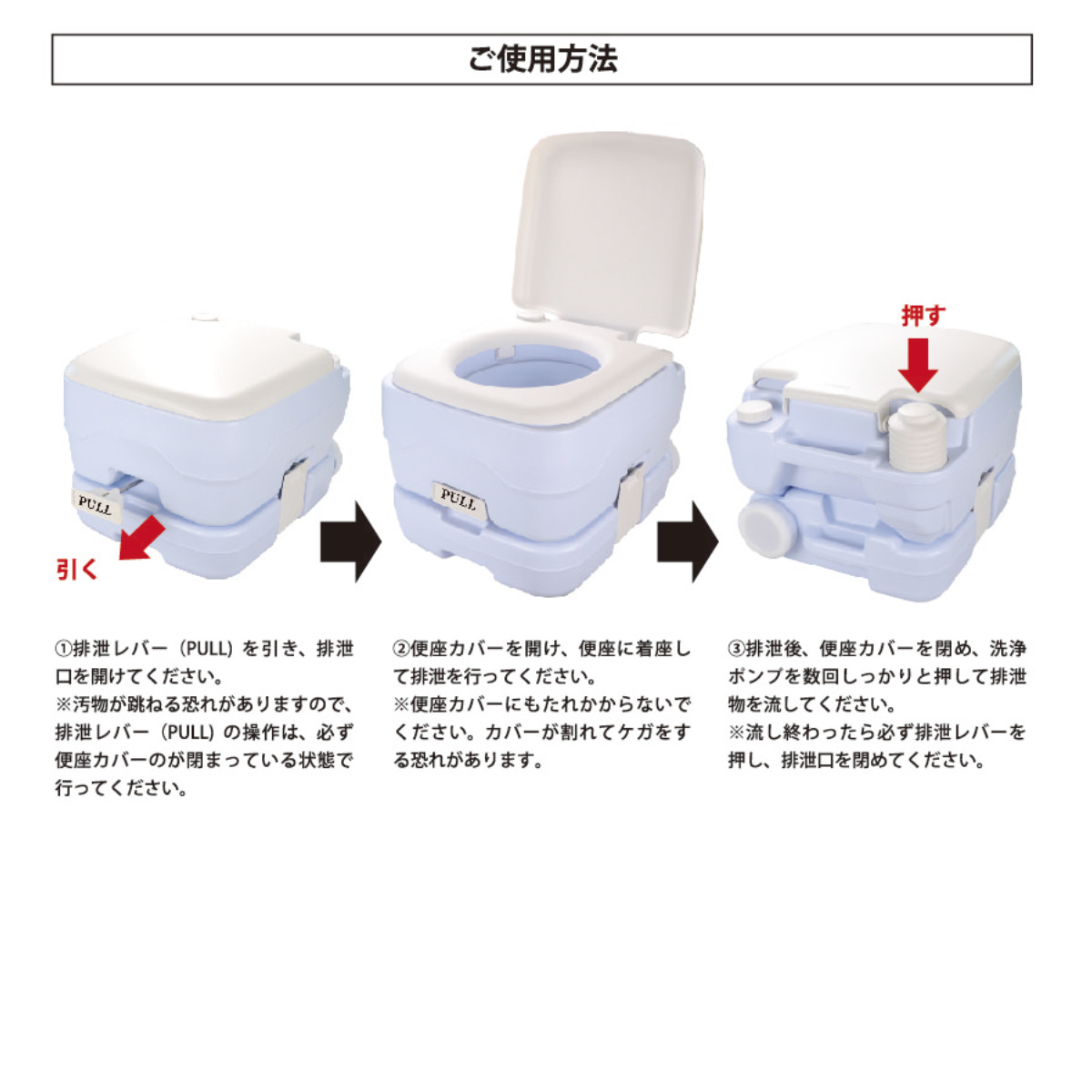 ![]() 災害時やアウトドアにも 手動式 ハンディシャワートイレ |