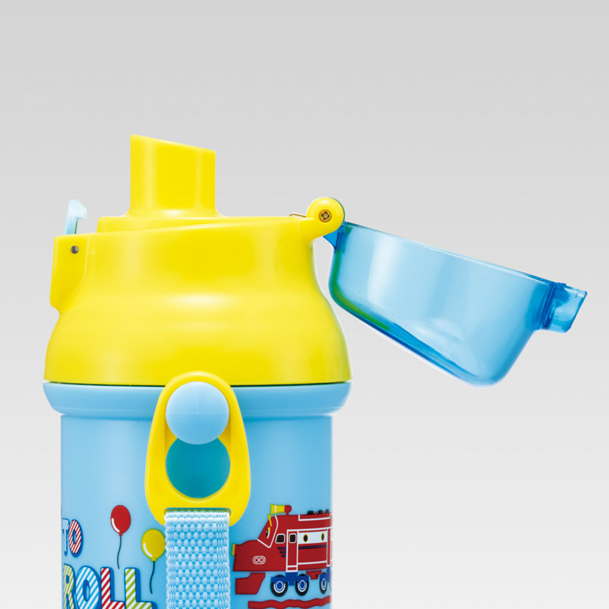 水筒の蓋はボタンを押すだけで開けることができるワンタッチ式です。飲み終わったら蓋をカチッと閉めるだけなので、小さなお子様でも簡単に開閉できます。