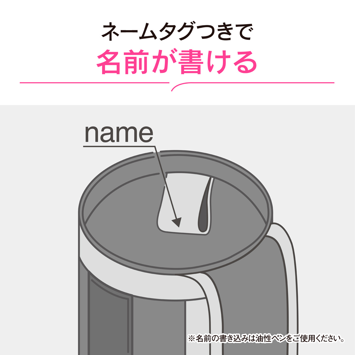 紛失防止になるネームタグ付きです。ネームタグはカバーの内側にあり、個人情報を守ってくれるのもうれしいポイントです。
