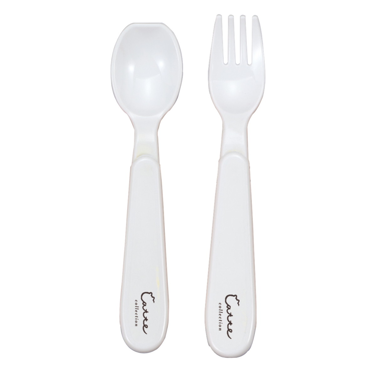 食べ物をすくいやすい平らな先端のスプーンです。お口に運ぶ際も安心な丸い先端のフォークです。