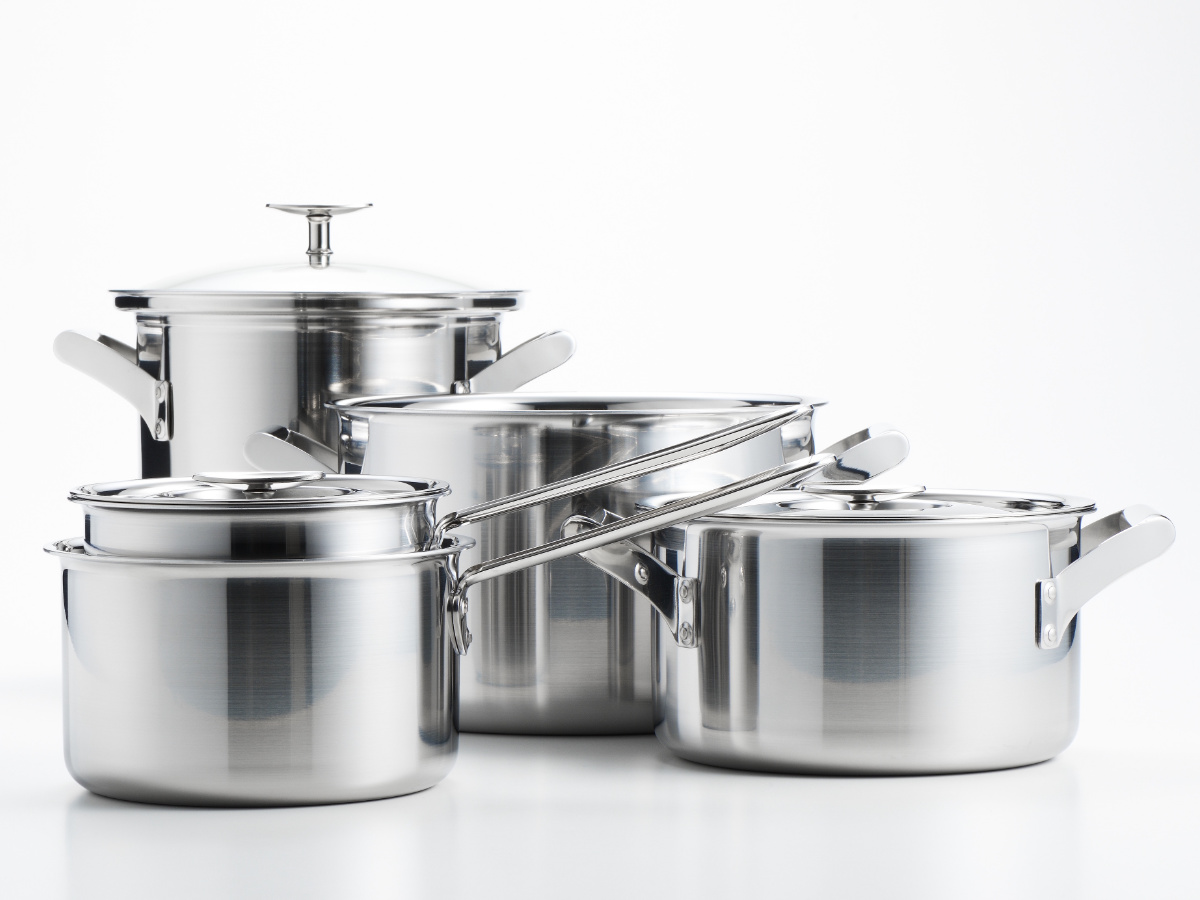 ステンレスの間にアルミを挟んだ全面3層構造です。IHクッキングヒーターに接する外側は有磁性に優れたステンレス(SUS430)を使用しているので、熱効率に優れています。また、発生した熱を内部のアルミが素早く均一に伝えるので、スピィーディに美味しく調理できます。