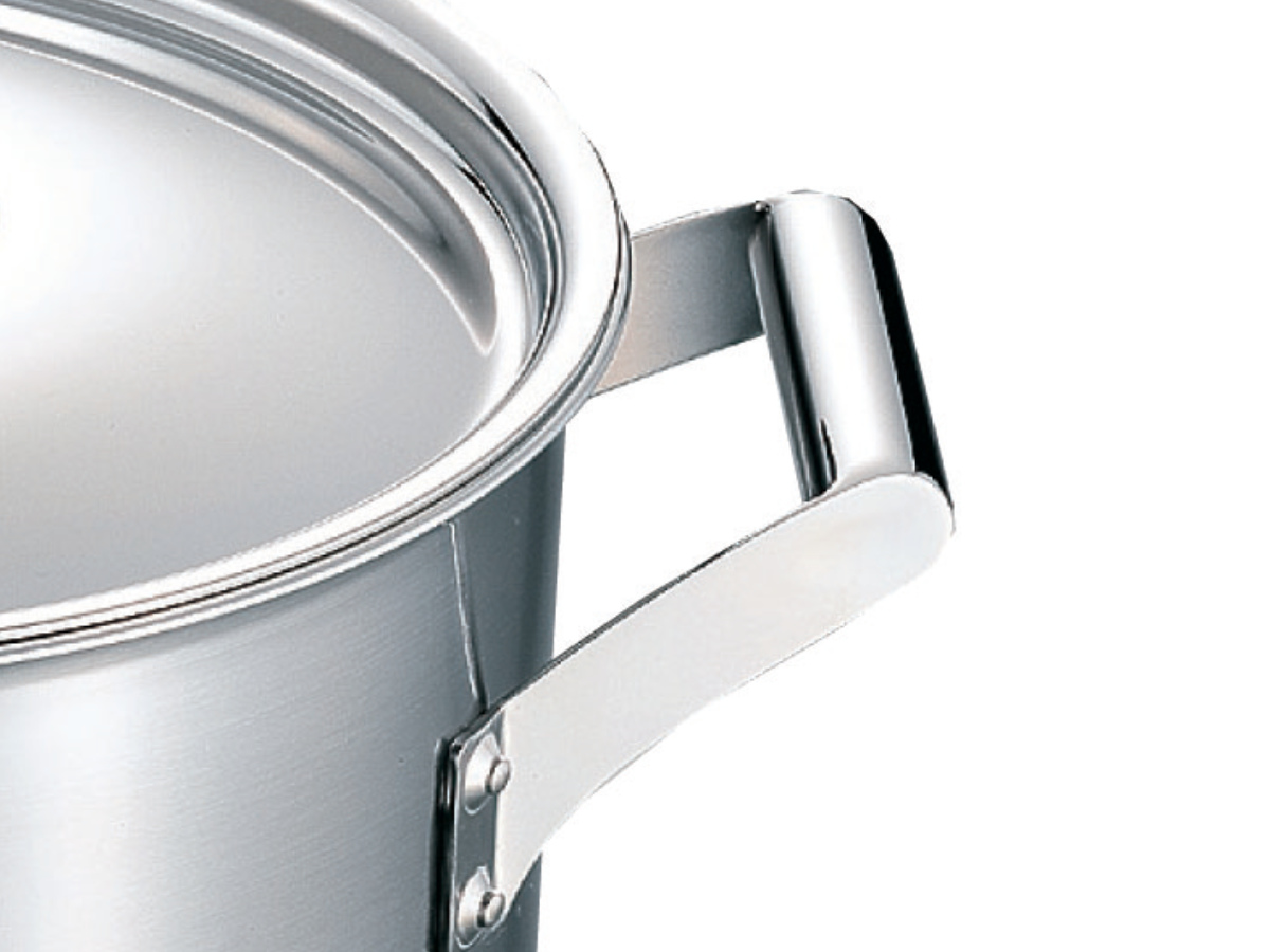 | 材質 | 【本体】アルミクラッド三層鋼 外側:ステンレス(SUS430=クローム18%、ニッケル0%) 内部:アルミニウム 内側面:ステンレス(SUS304=クローム18%、ニッケル8%) 【持ち手】18-8ステンレス 【フタ】18-8ステンレス |