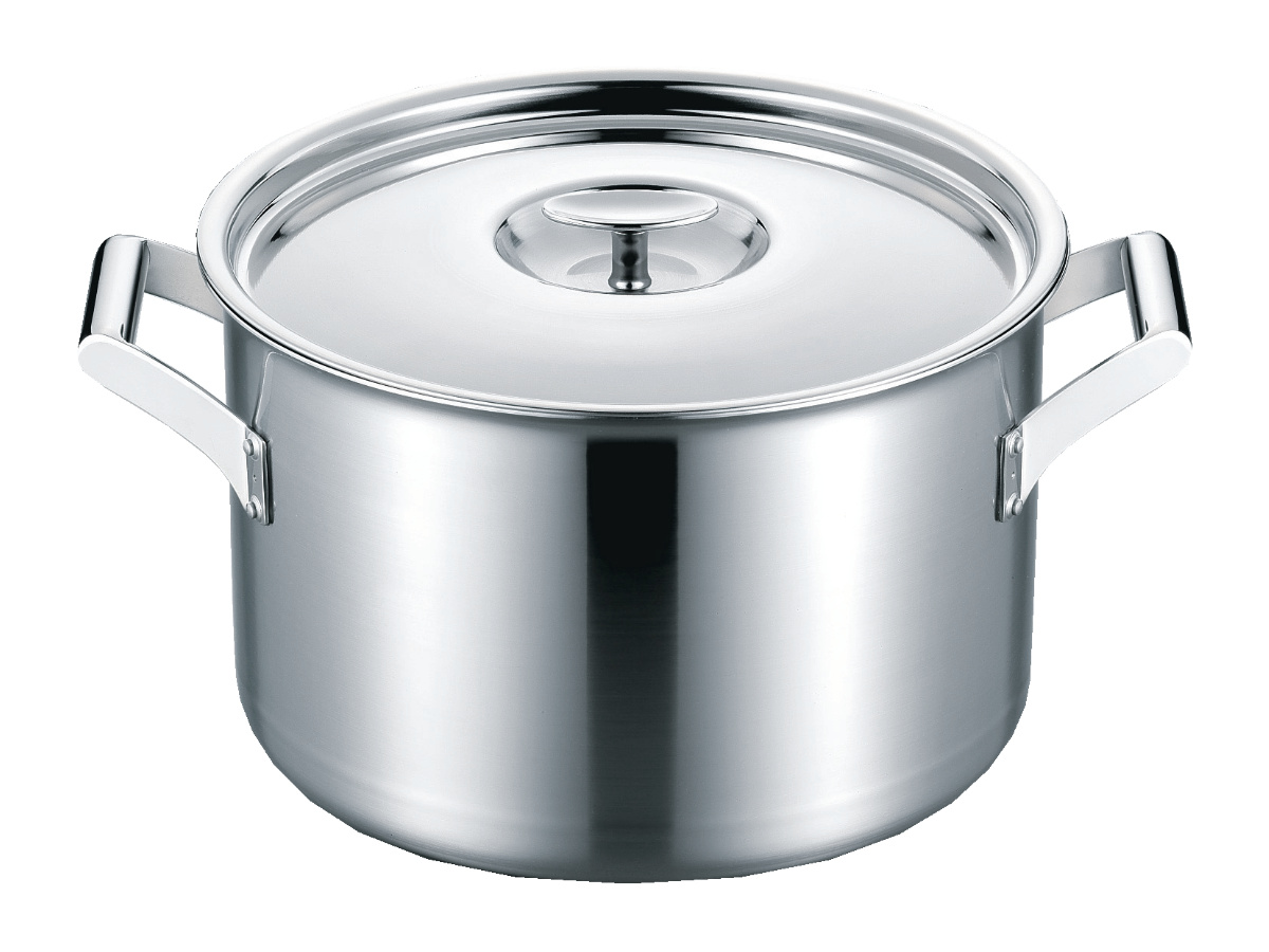 ステンレスの間にアルミを挟んだ全面3層構造です。IHクッキングヒーターに接する外側は有磁性に優れたステンレス(SUS430)を使用しているので、熱効率に優れています。また、発生した熱を内部のアルミが素早く均一に伝えるので、スピィーディに美味しく調理できます。