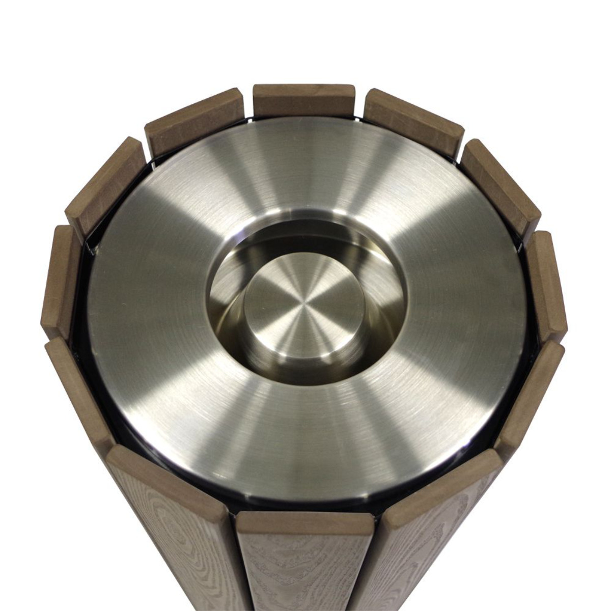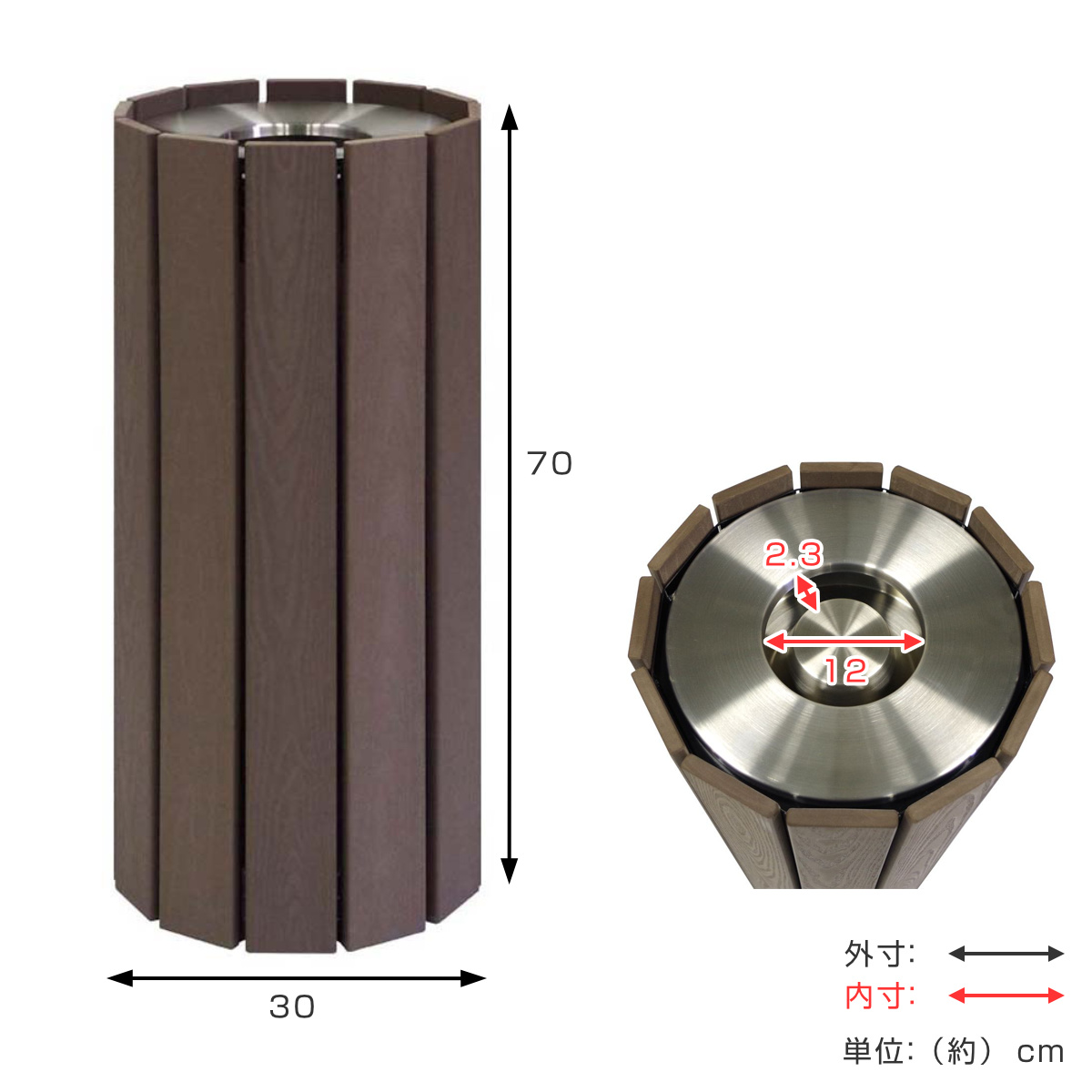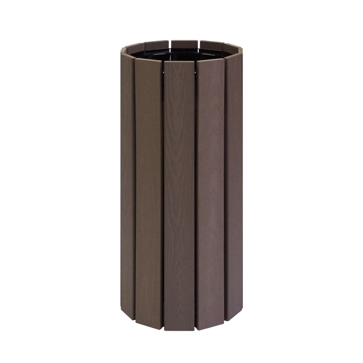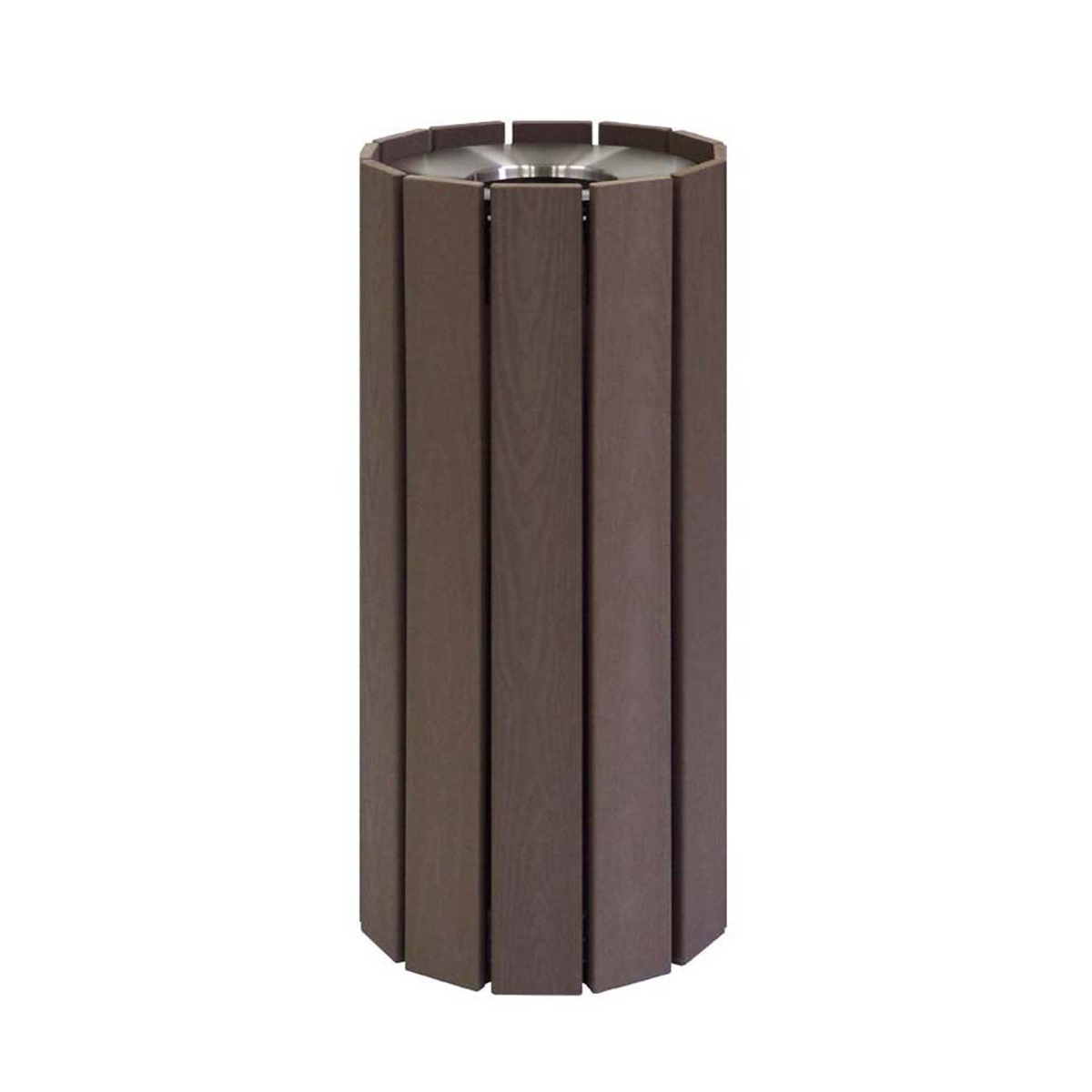 天然木のような質感を持つ再生樹脂製の屋内用灰皿です。オフィスやホテル、レジャー施設など、どこでも馴染みやすい、木目調のシックなデザインです。