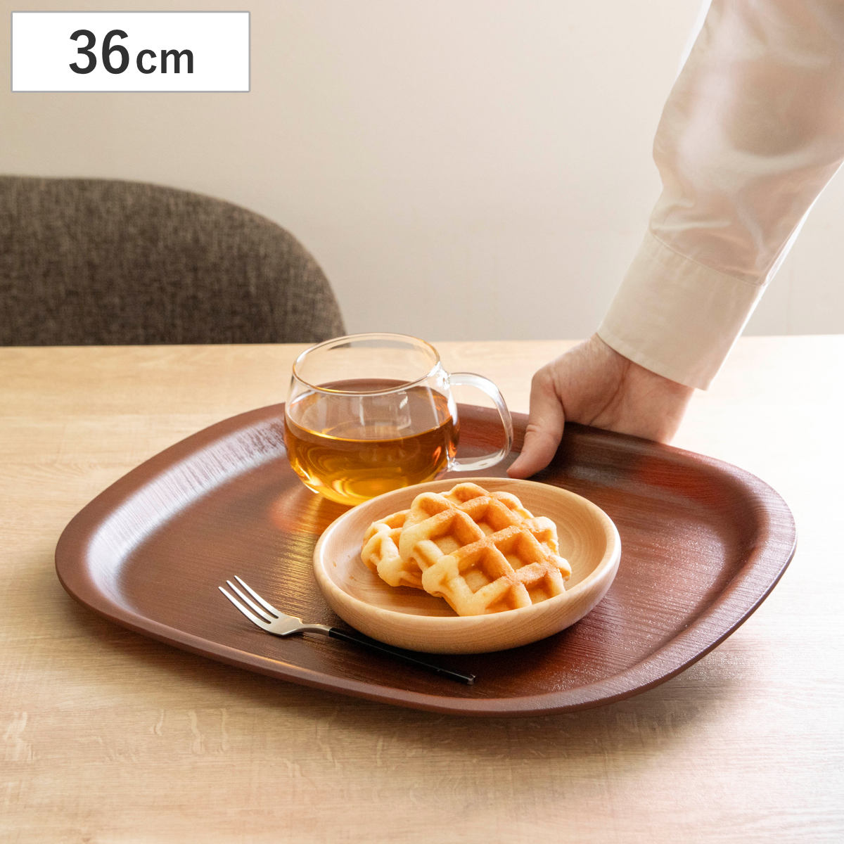 おしゃれな木目調のトレーは、和洋問わずどんなお料理も引き立ててくれます。角・丸どちらも1人分のお茶碗と汁椀を置けるぐらいのサイズ感です。落ち着いた色合いで、お客様のおもてなしや食卓を上品に演出します。