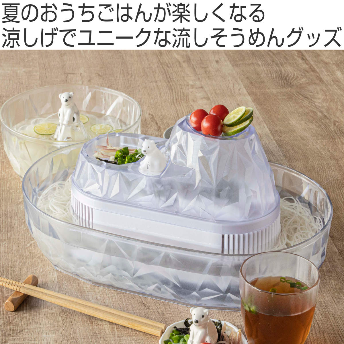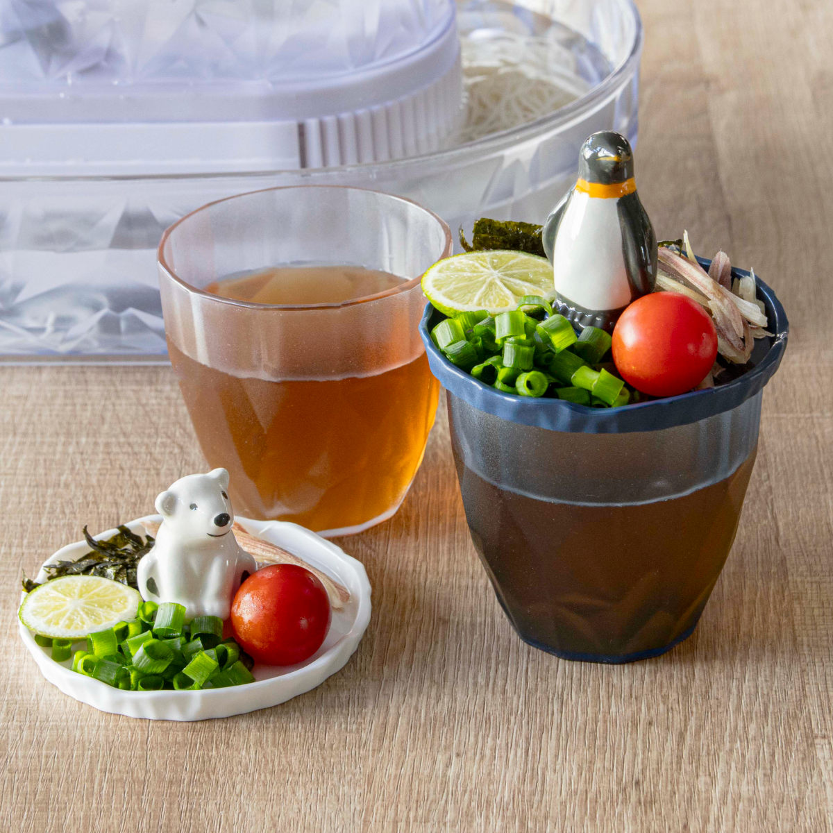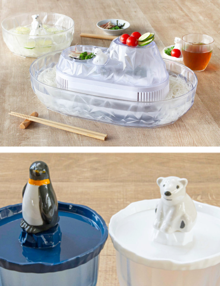 シロクマやペンギンが流氷の上にちょこんと佇んでいる癒しのデザインです。普段はあまりそうめんを食べてくれないお子様でも、かわいいシロクマやペンギンと一緒に楽しみながら食事ができます。同じシリーズの流しそうめん器とそうめん鉢も揃えて使うと、より一層楽しい雰囲気が味わえます。