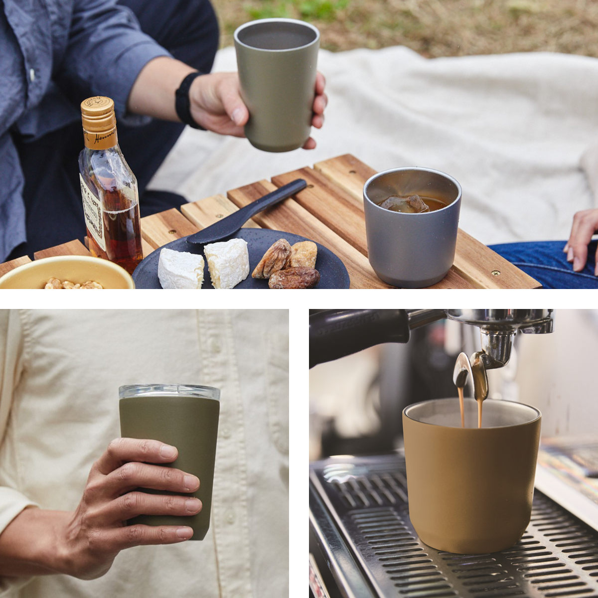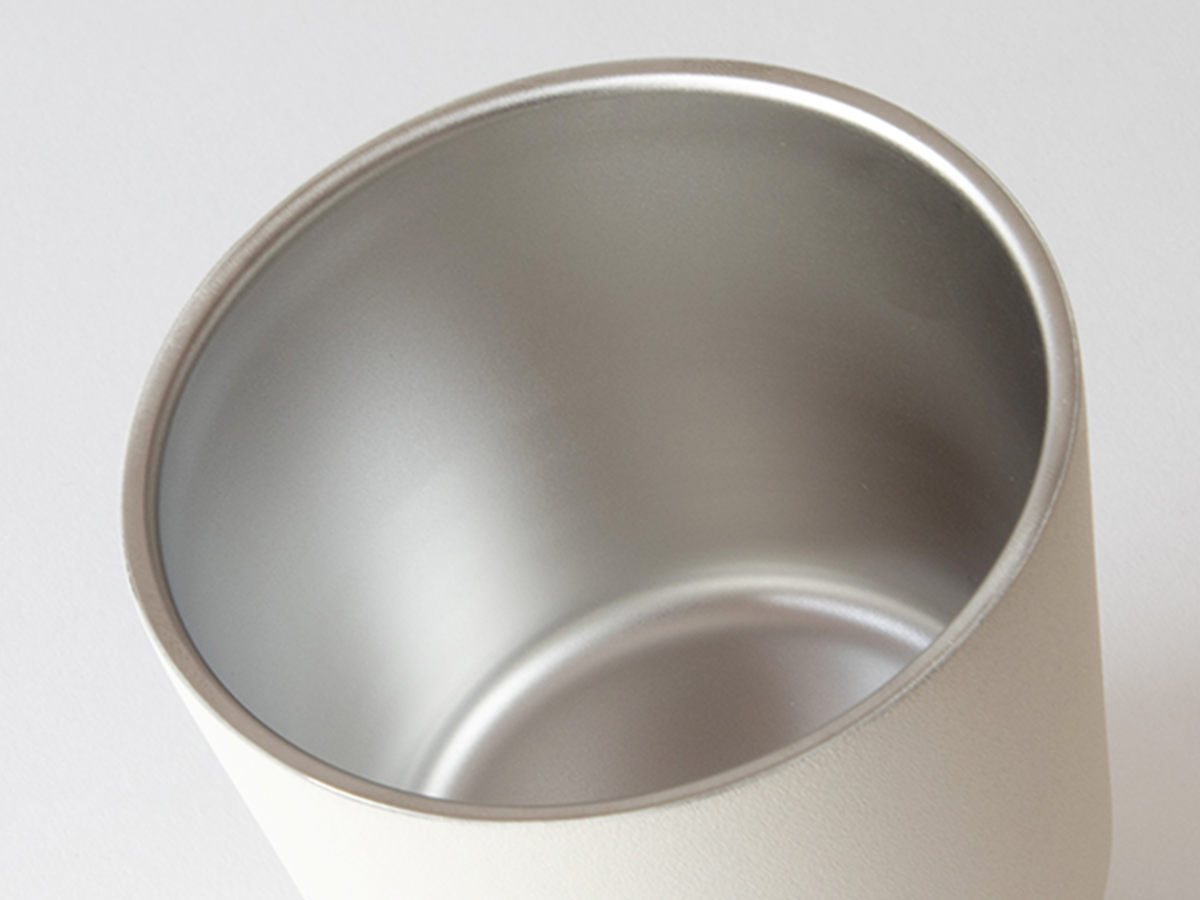 縁が薄く口当たりが良いのでアウトドアシーンでのカップとしても活躍します。マットな触り心地と落ち着いた色合い、飽きのこないシンプルなデザインでライフスタイルに合わせて幅広いシーンで大活躍します。