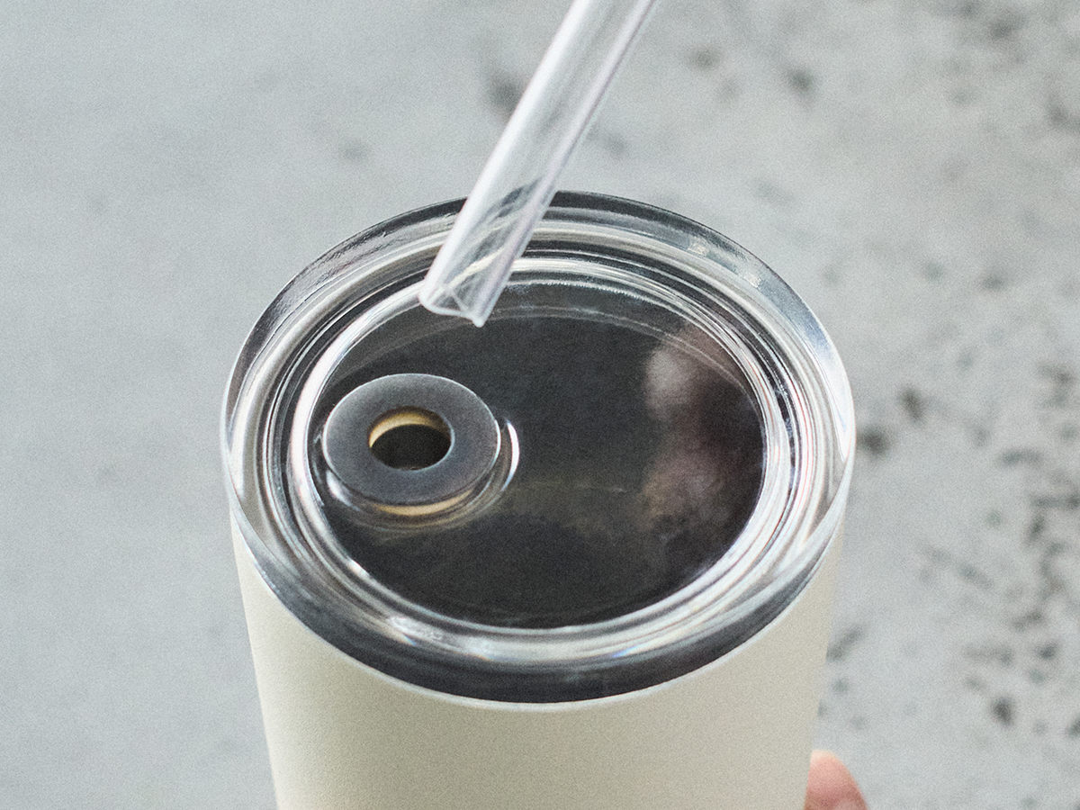 マットな質感と落ち着いた色合いが特徴的なストロー付きタンブラーです。ステンレス製の真空二重構造なので保冷・保温に優れていて、長時間美味しい温度を保ってくれます。仕事中や本を片手にリラックスしている時、オフィスでの使用にちょうどいいサイズです。
