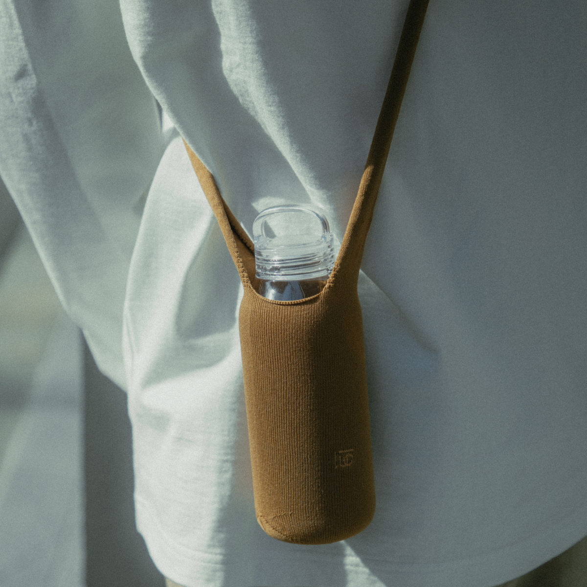 斜め掛けにして、ボトルを持ち運べるスリングバッグ