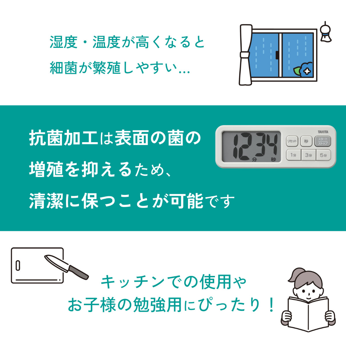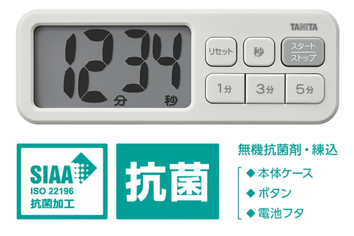 ●安心の抗菌加工が施されたキッチンタイマーです。