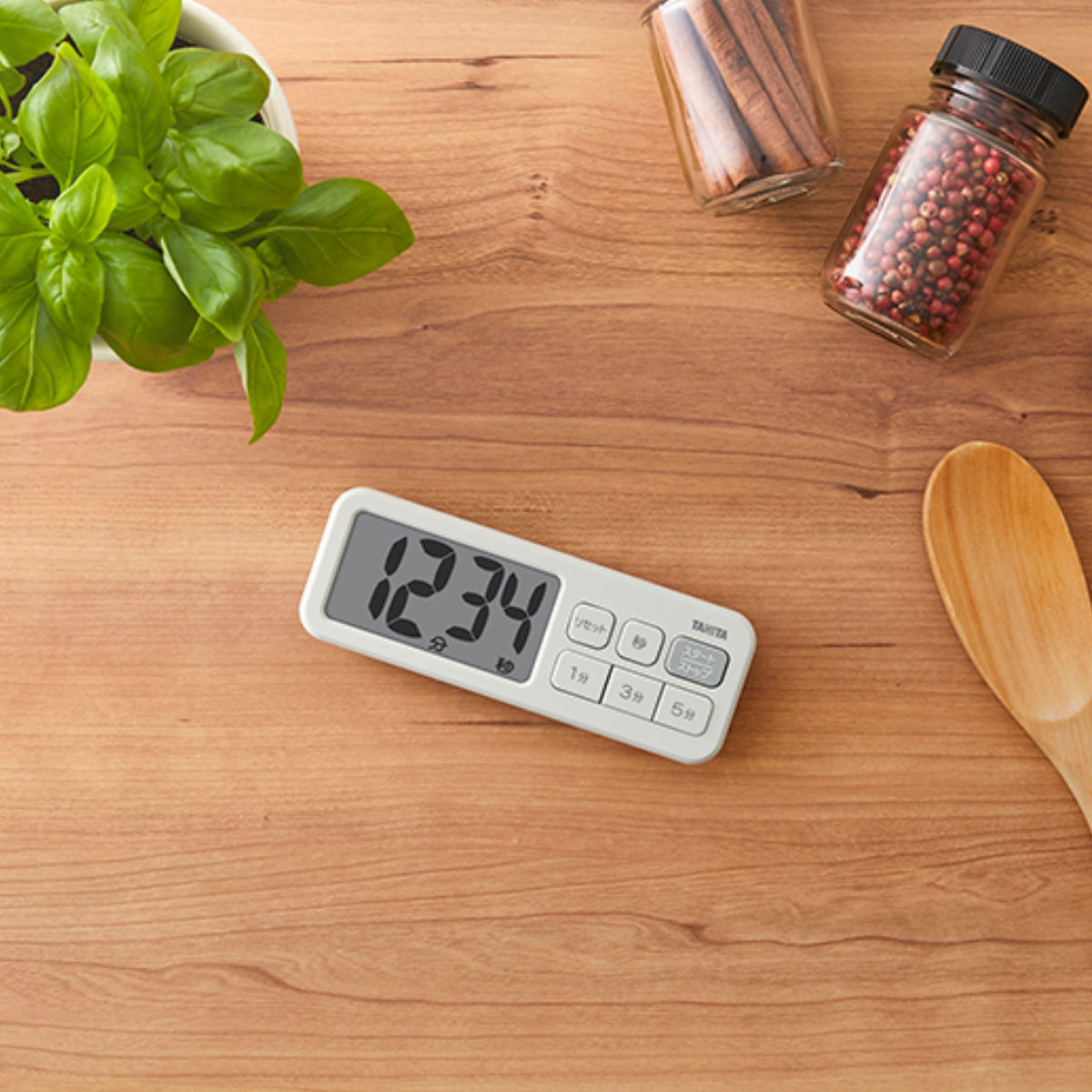 艶消しのマットカラーがおしゃれなタイマーは、シンプルデザインでどんなテイストのお部屋にも調和します。