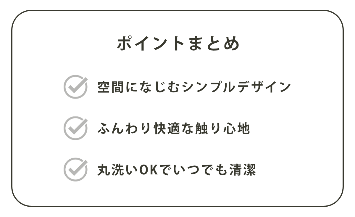 洗濯機で丸洗いできるタイプのため、汚れが気になったときはすぐにお手入れ可能です。清潔な状態を保てるので、いつでも安心してお使いいただけます。