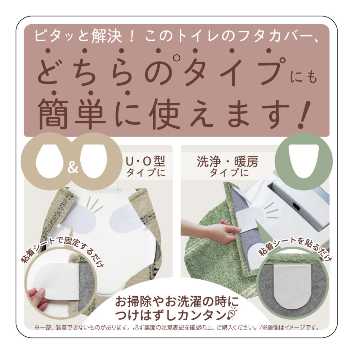 ![]() トイレマット 55×60cm | ![]() トイレマット ロング 105×70cm | ![]() 蓋カバー 普通型・洗浄暖房型 兼用 【▲このページの商品】 |