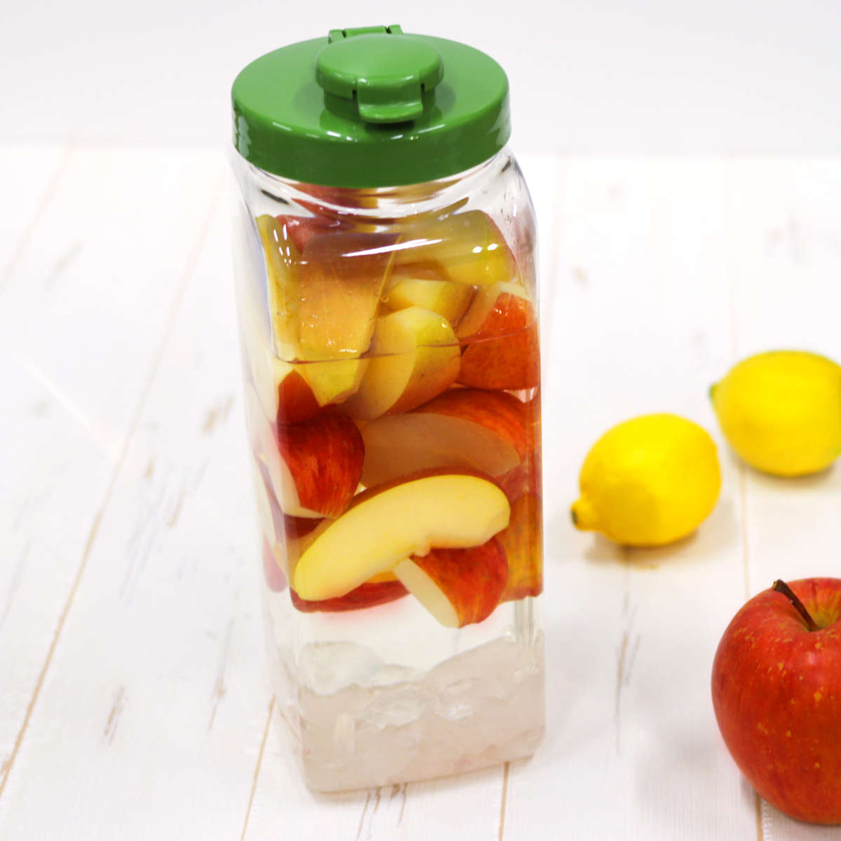 冷蔵庫のドアポケットにもすっきり収まる、スリムな2.1リットルサイズです。場所をとらずに、すっきりと保管できます。