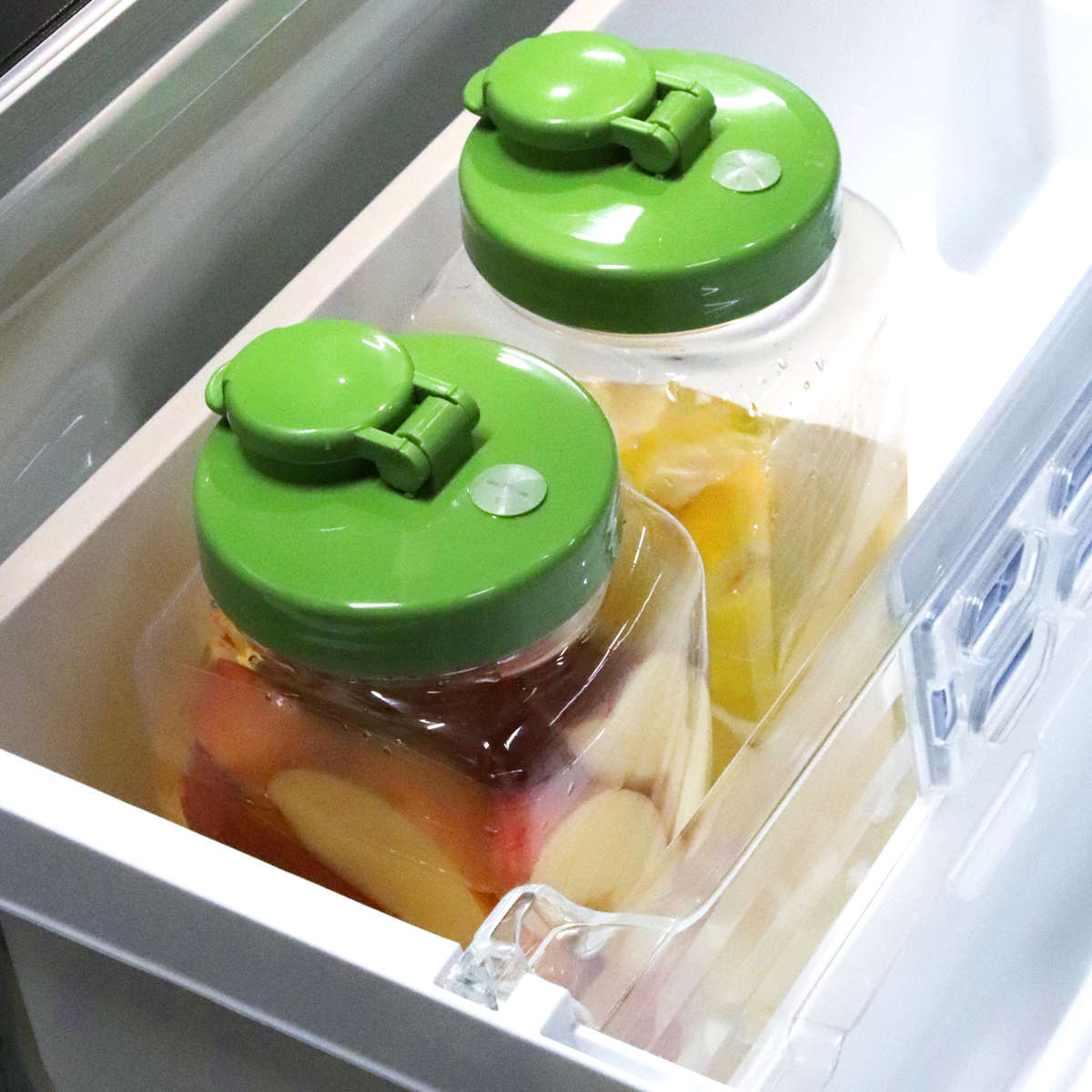 酸に強く、におい移りもしにくいため、酢漬けや果実酒、酵素シロップづくりにぴったりの容器です。容量は2.1Lと扱いやすく、初心者の方にも気軽にお使いいただけます。