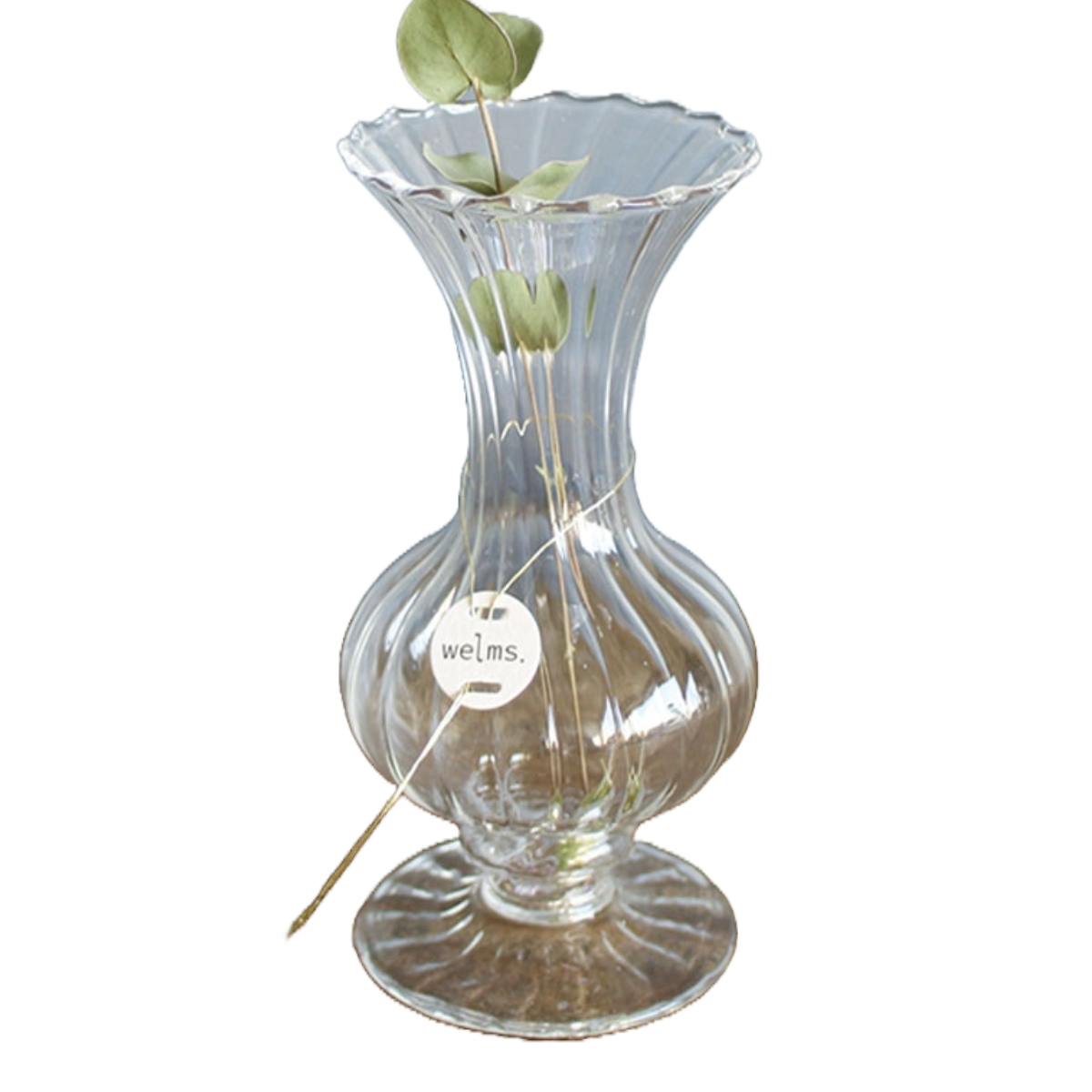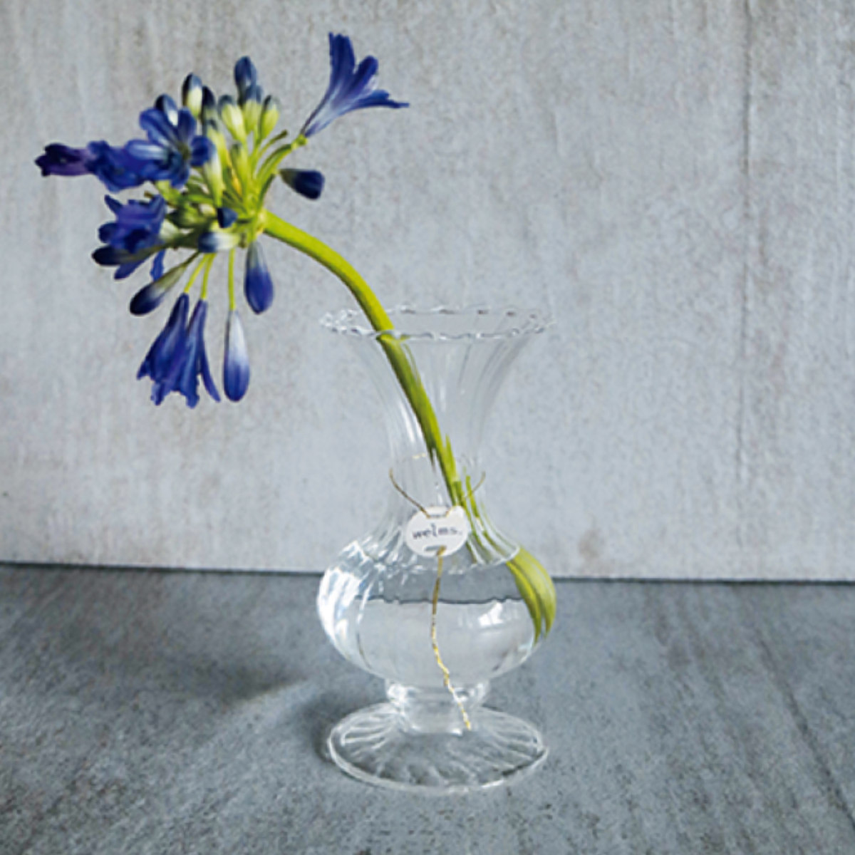 上品で華やかな形が美しい一輪挿しです。シンプルなデザインなので、お庭で摘んだ草花でも素敵に飾ることができます。繊細で清楚なガラスのデザインは、どんなお部屋にも調和します。