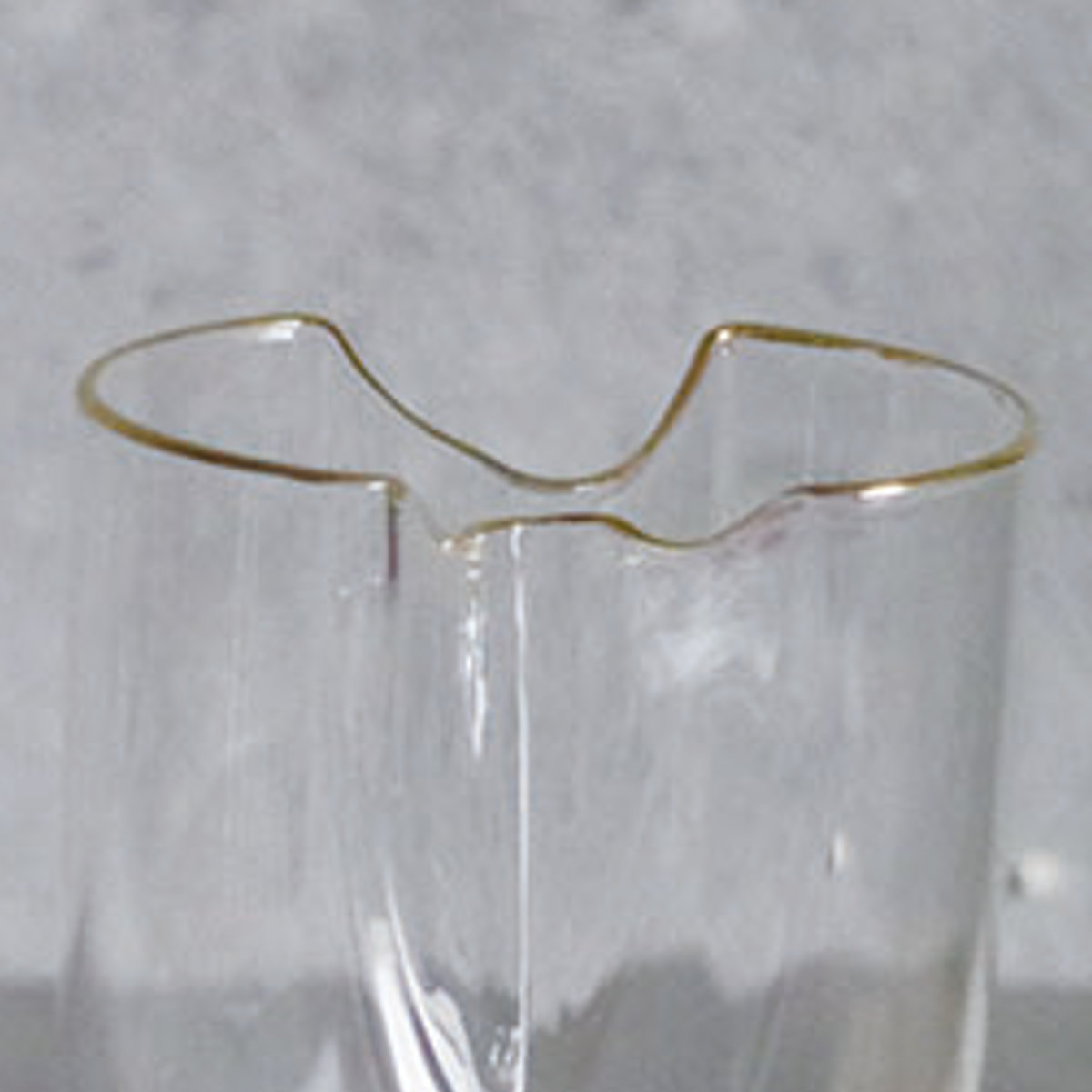 口元はいびつな形になっており、お花を偏ることなくふわっと活けられます。上部にはゴールドのラインがほどこされ上品さを演出します。