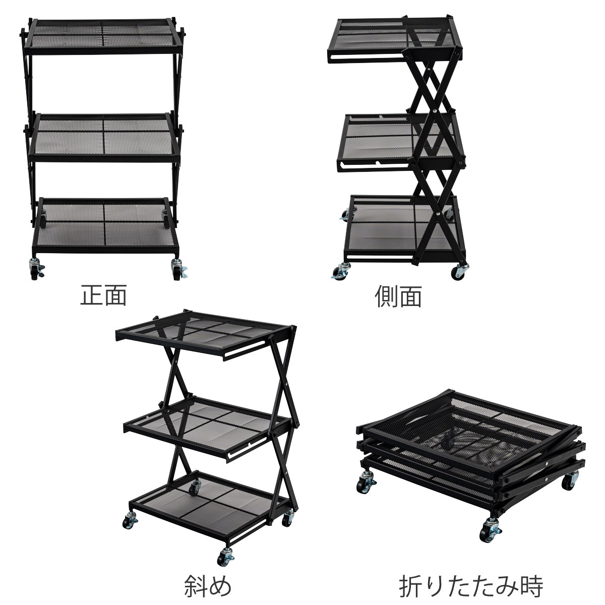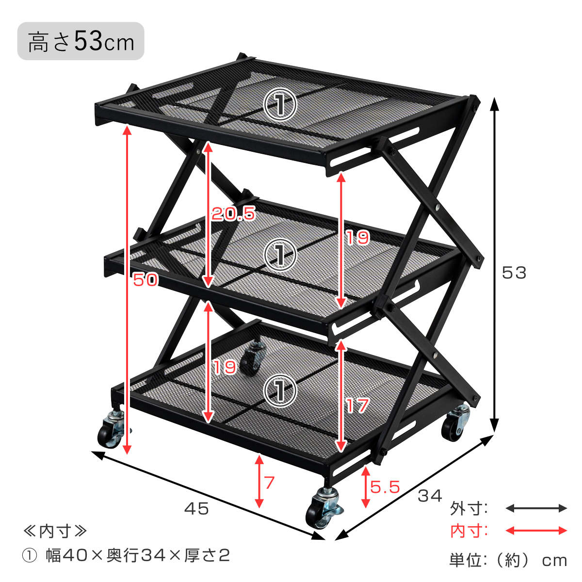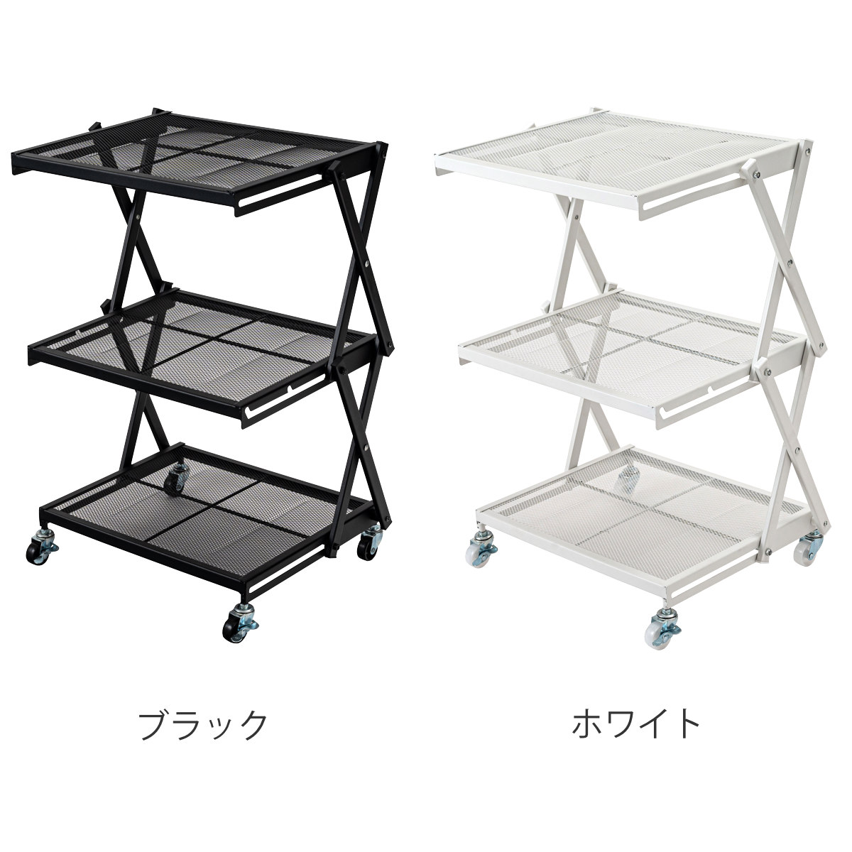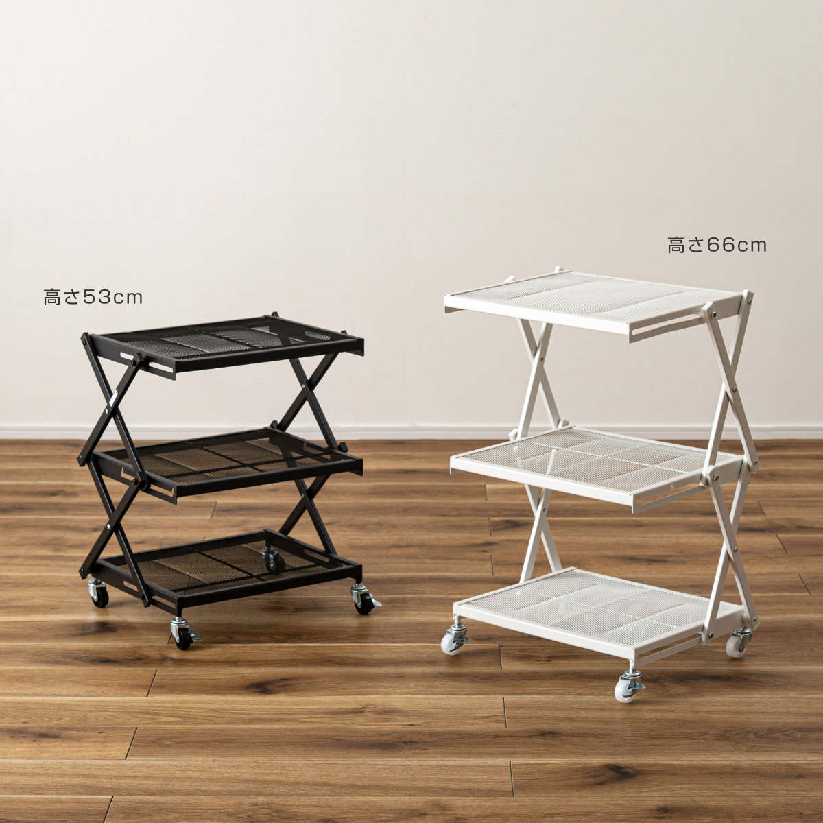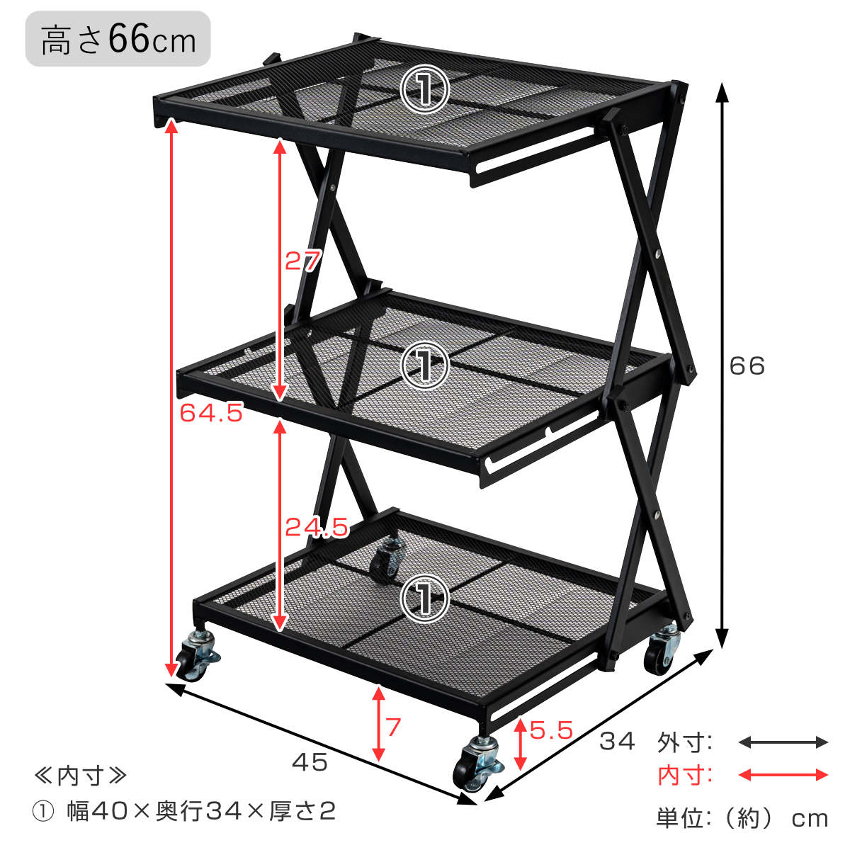 3段の棚でしっかり収納できるフォールディングラック 幅45cm