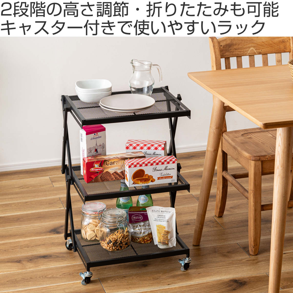 2段階の高さ調節で使いやすいラック 折りたたんで収納もOK