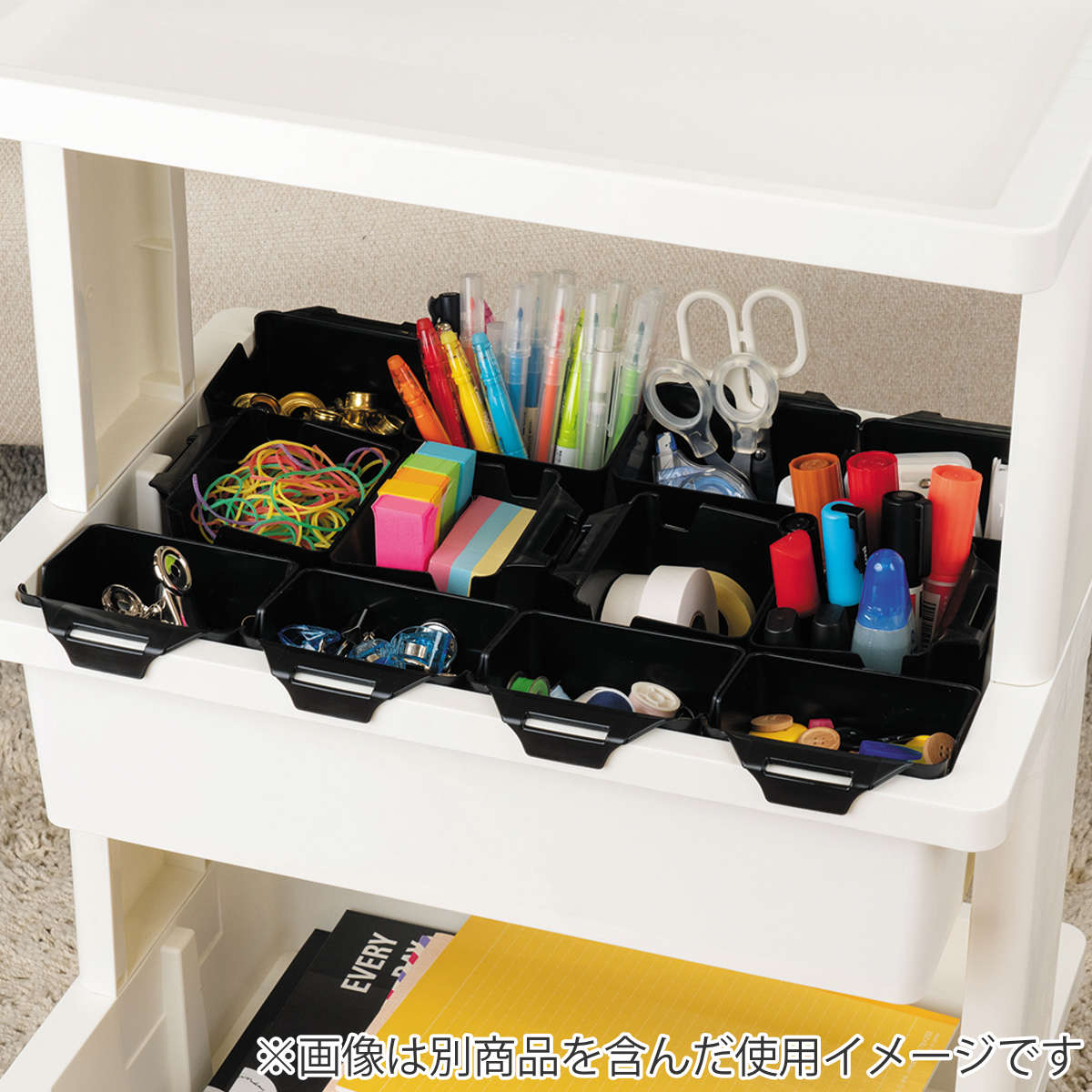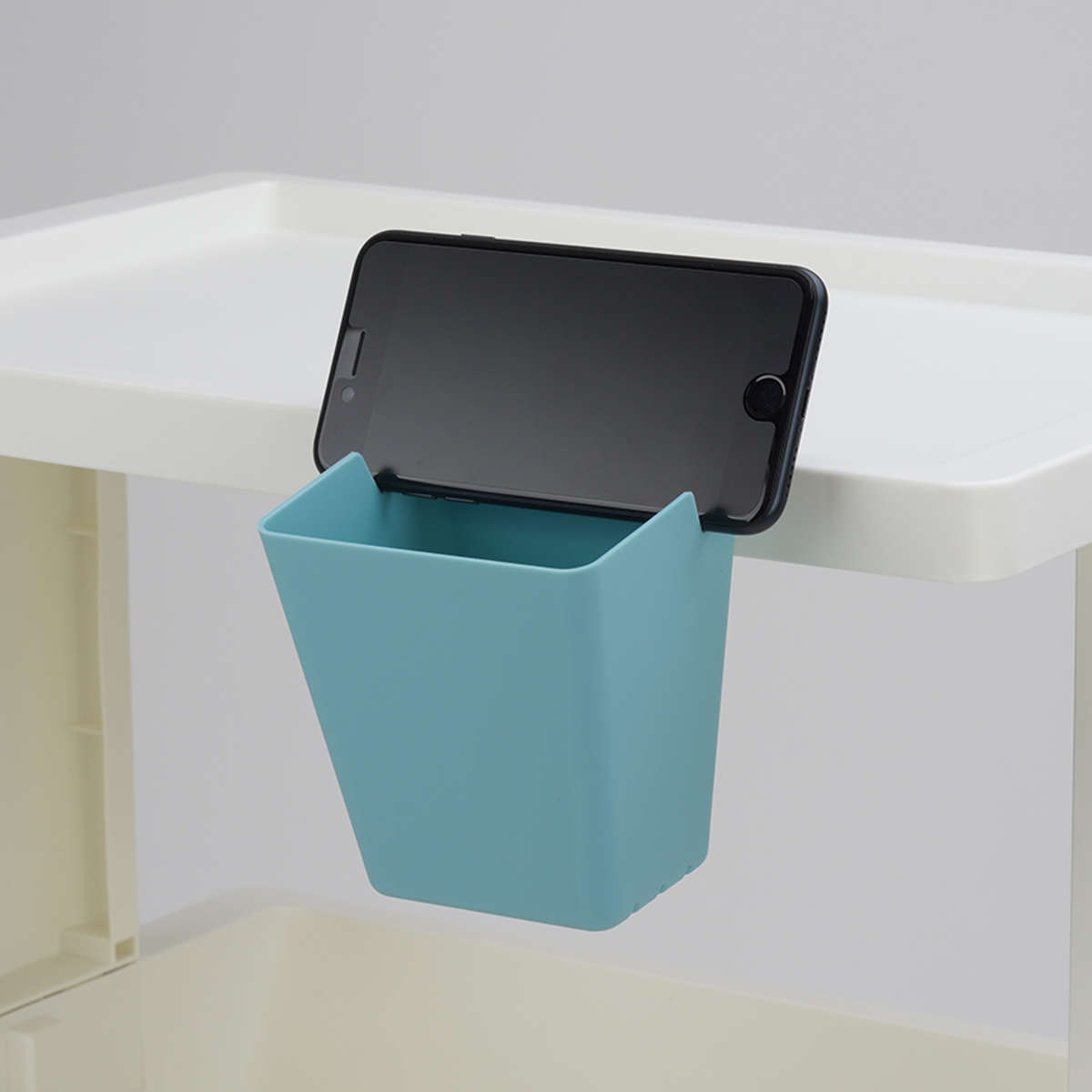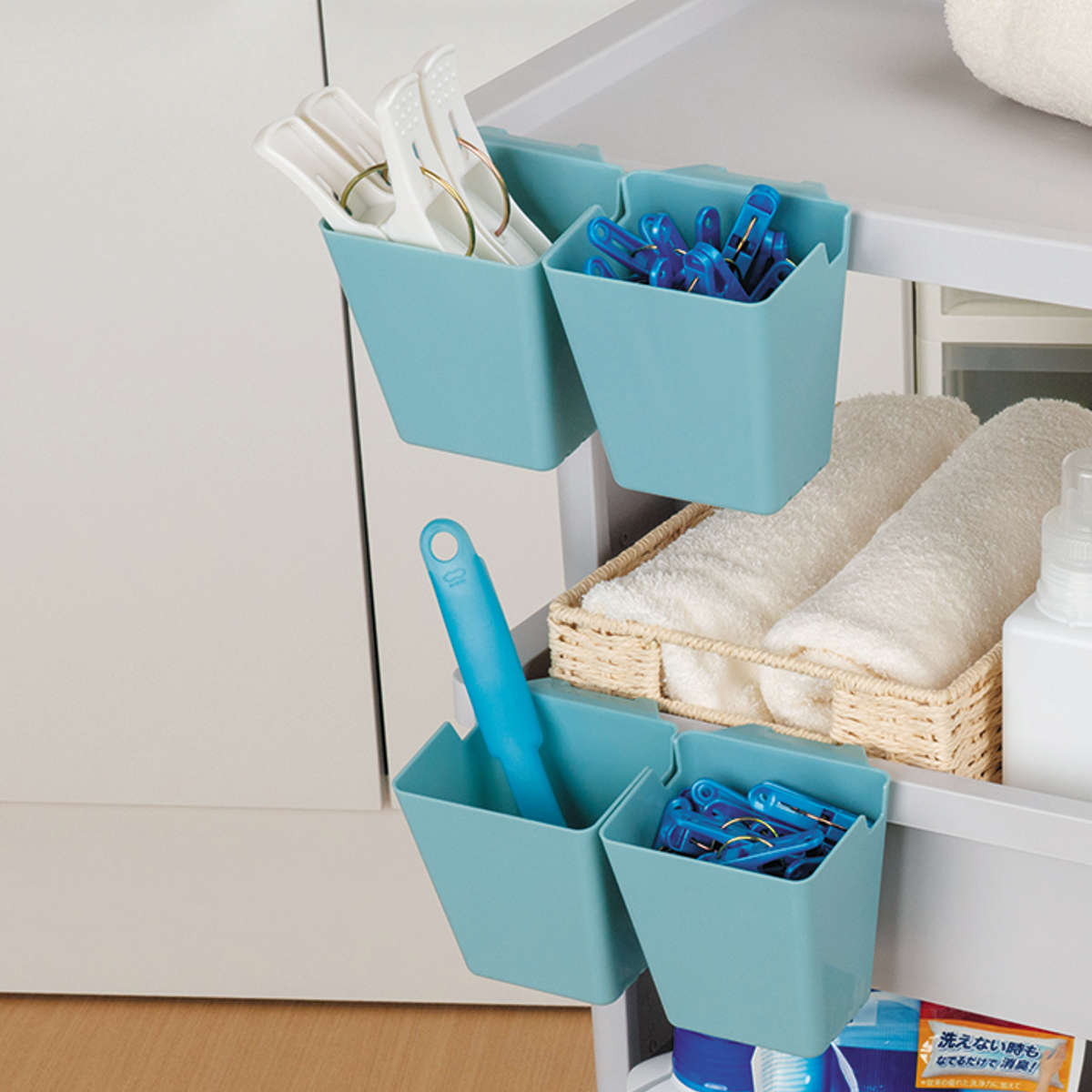 別売りのフェルマーシリーズのバケツのフチやハンドルにも掛けられます。大きなボックスでは埋もれがちな、細々とした日用品やおもちゃをスッキリ整理できます。