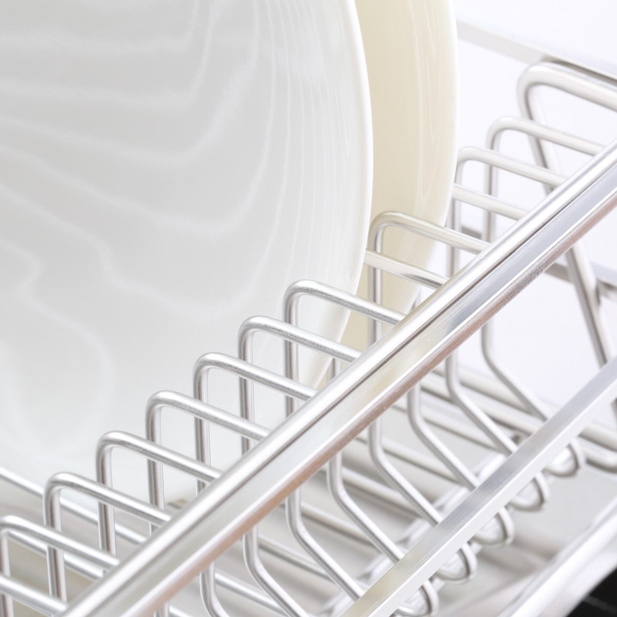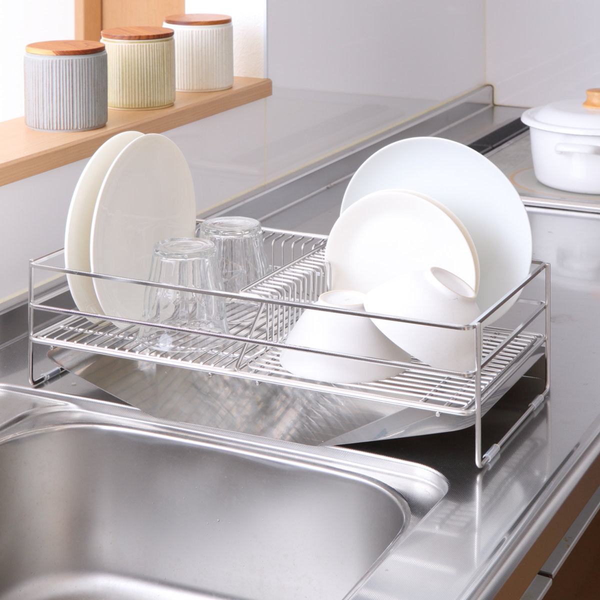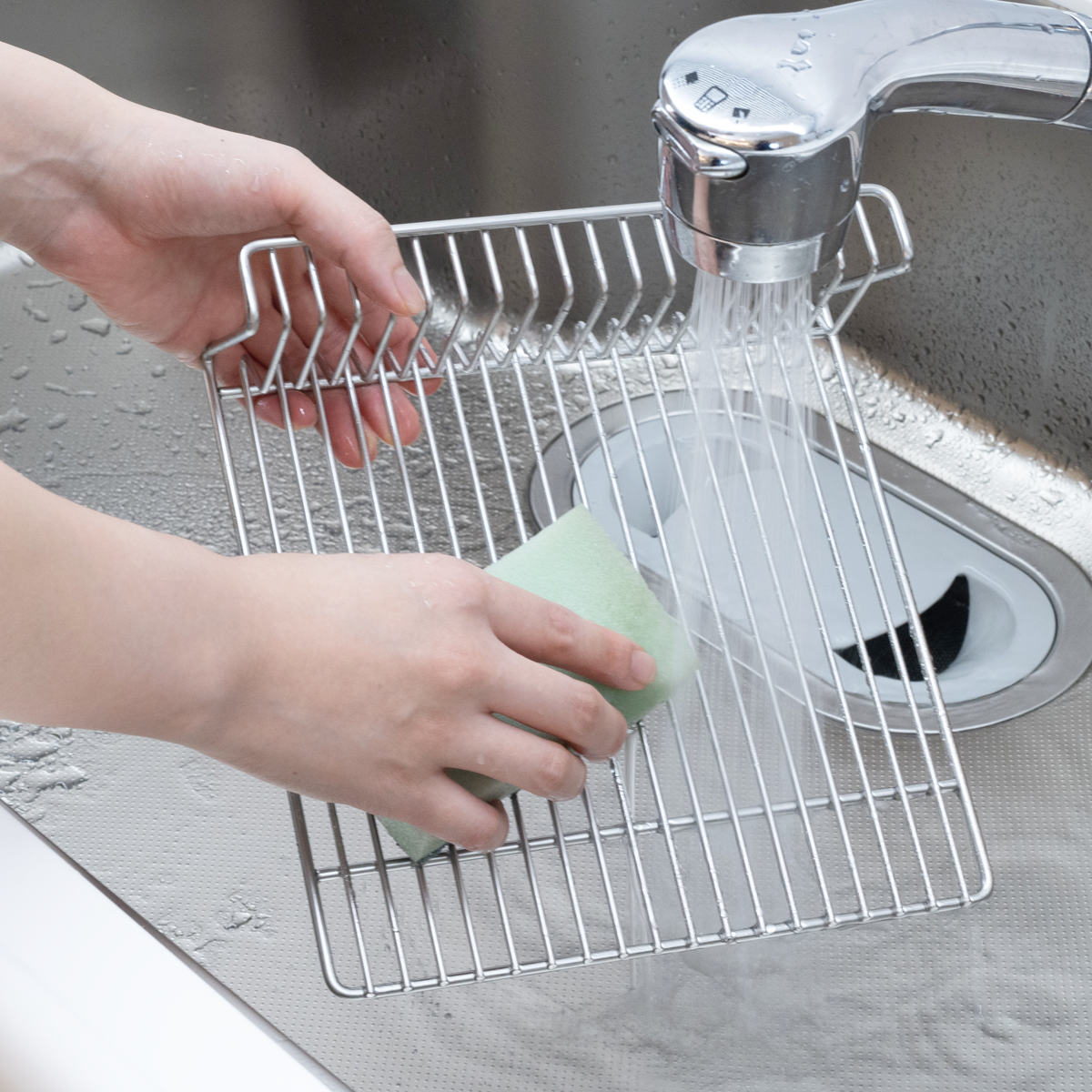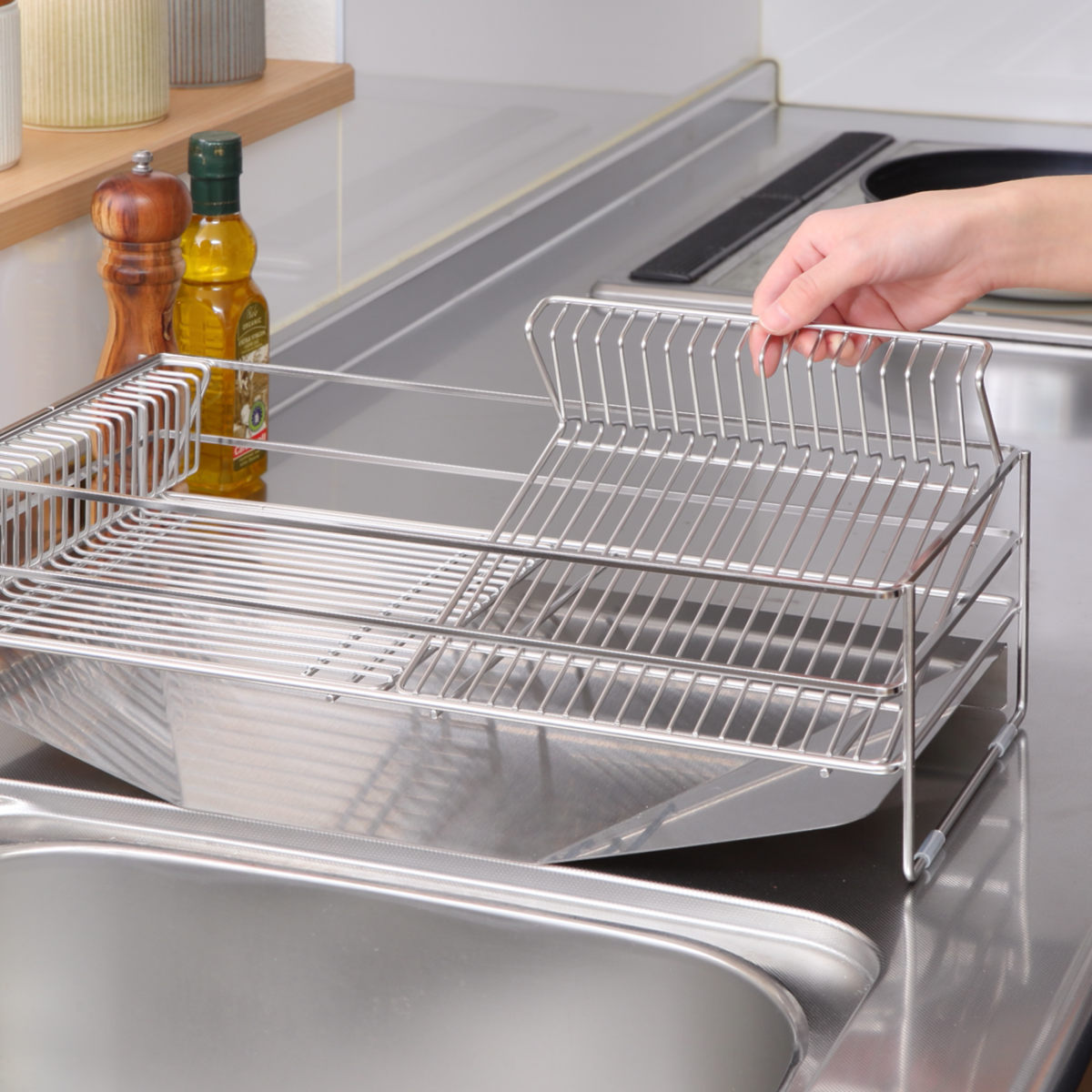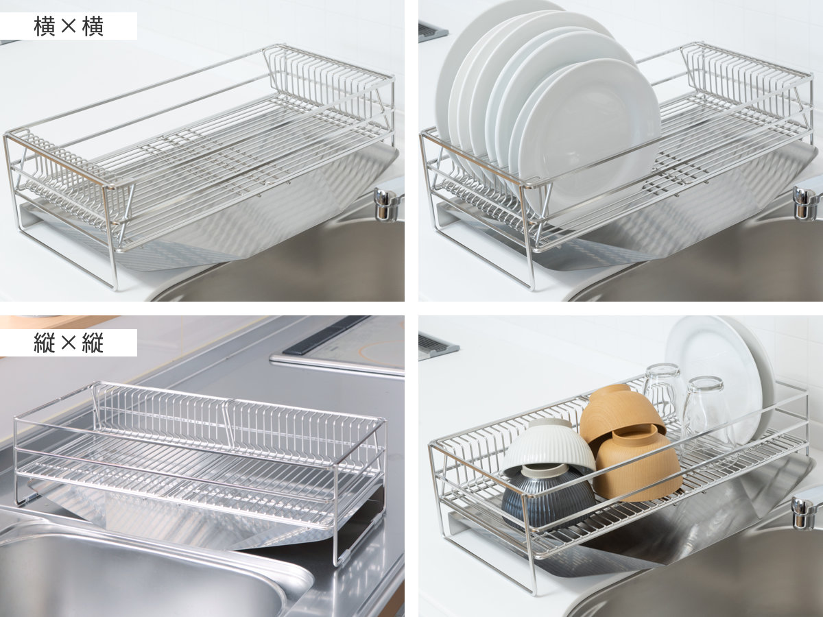 底面のワイヤー部分が2つに分割されているので、縦横自由に組み替えられます。利き手やシンクの向きに合わせたり、乾かすお皿のサイズに応じて調整したりと、使い方の幅が広がります。