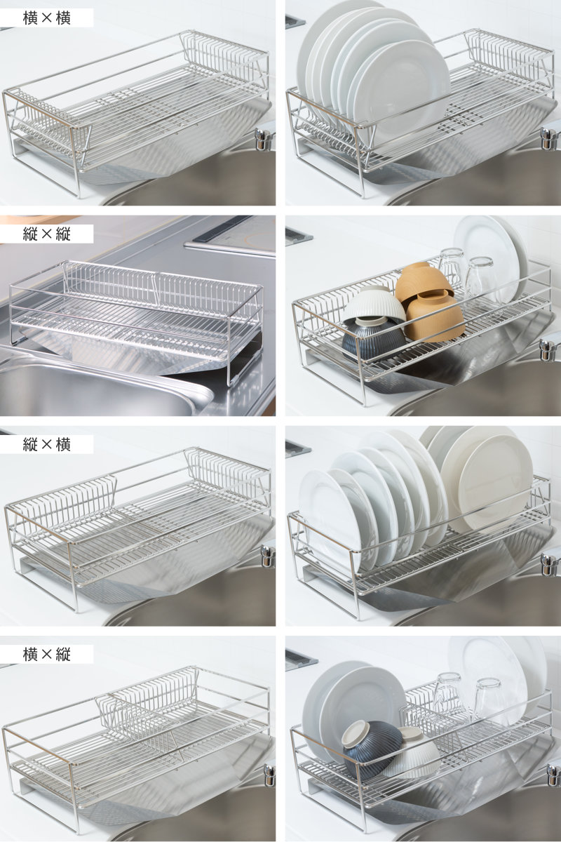 食器に合わせて縦横自在に組み替えられる水切りラック