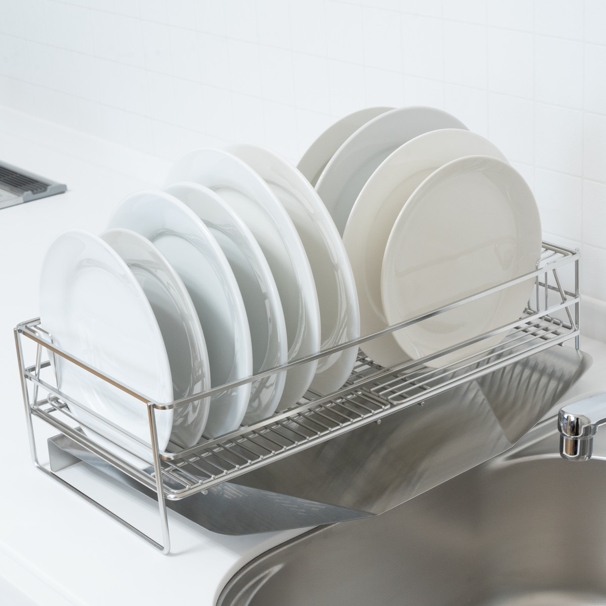 片側の側面がせり出した構造になっており、お皿をしっかりキャッチしてくれます。考えずにスイスイ置けるから洗い物がスムーズに。小さいお皿も寄せてセットすれば倒れずに安定して置けます。
