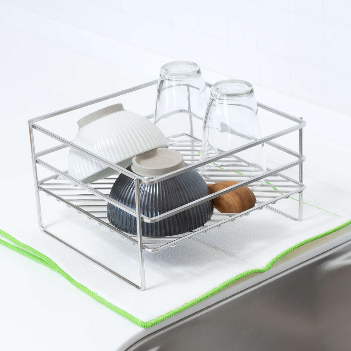 キッチンの作業スペースを確保しやすいコンパクトサイズの水切りかごです。一人暮らしの方や、食洗機を主に使う方のちょっとした水切りにもおすすめです。